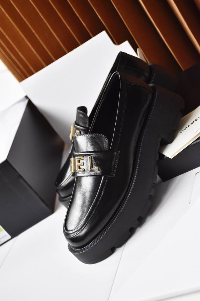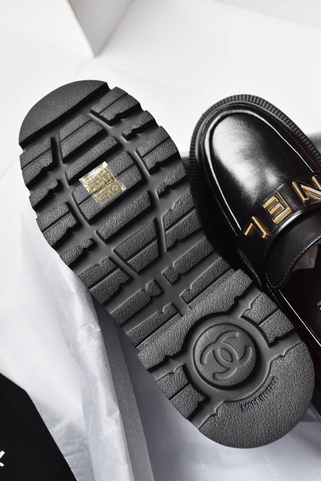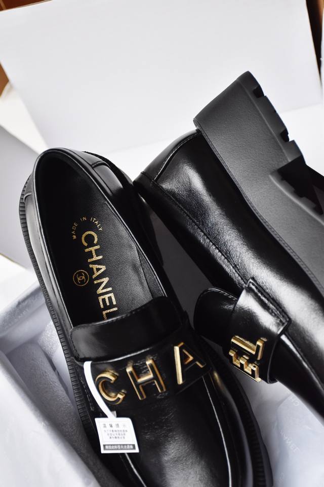 Chanel小香最新款乐福鞋! 如果还没有尝试过乐福鞋的小伙伴一定一定来买上一双!!!因为乐福鞋能给你的惊喜实在是太多太多了!!小香给人的感觉就是不喧闹 低声的优雅 不论是他家的服饰还是鞋款 总能给人一种毫不妥协的高品质~ 香奈儿的这款乐福鞋就是一个最好的例子 不花俏也不高调 反而这一次的鞋款给人一种将极简主义美学贯穿于每一个细节的诠释! 整双鞋以柔软小蜡油皮打,造,轻便厚底设计营造出分明的美感。金色小Logo点缀,更是整体锦上添花,美得让人心生向往。隐形增高的设计,既能让你雍容优雅,又能营造美身姿,真可