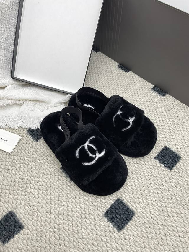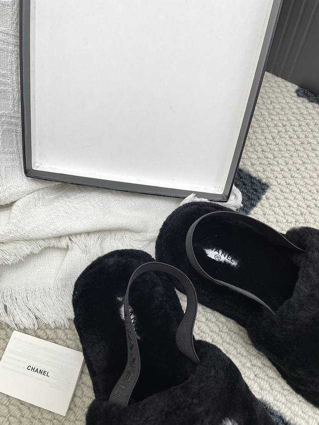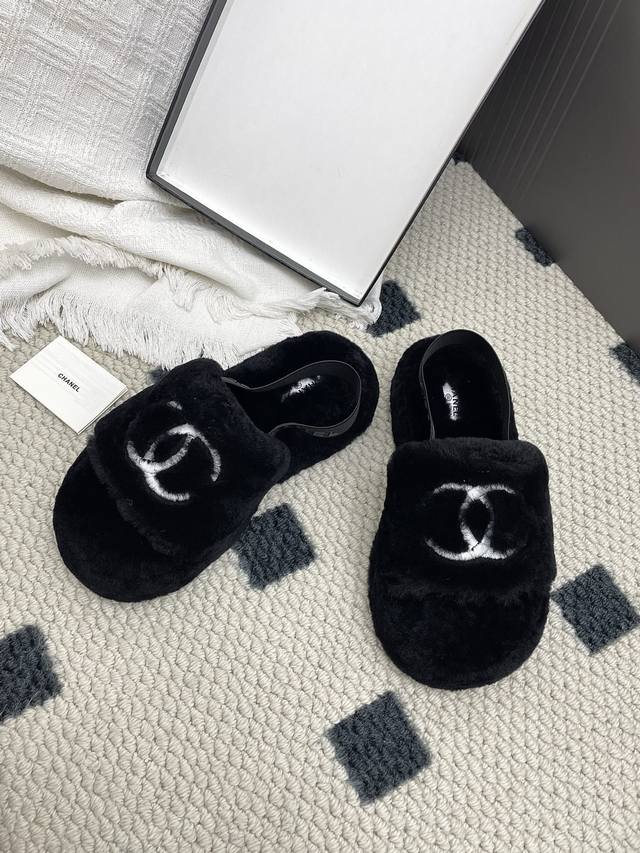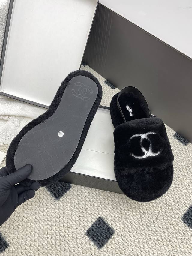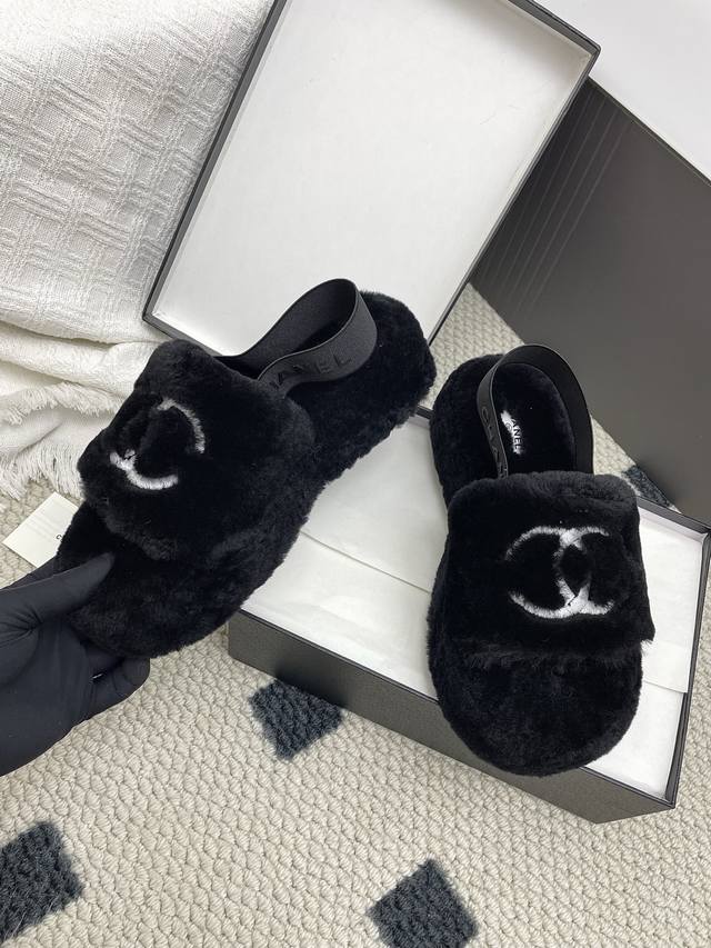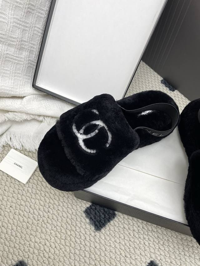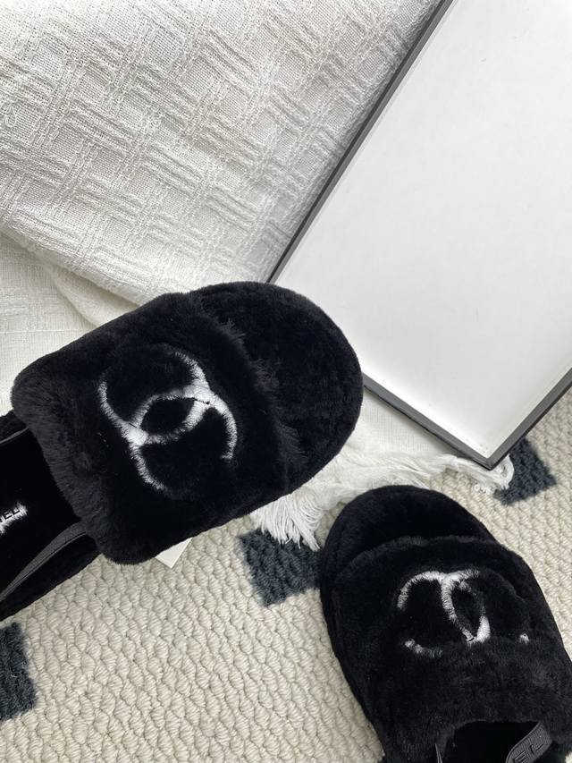 Chanel小香经典双C厚底毛毛拖鞋 这款毛拖真的是真太可爱了~柔软蓬松的毛毛,舒服暖脚 秋冬搭配袜子休闲又慵懒,上脚真的好看又时髦 鞋面:羊毛 底厚:5Cm