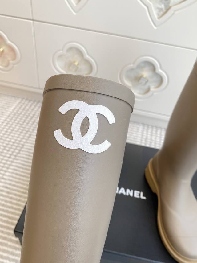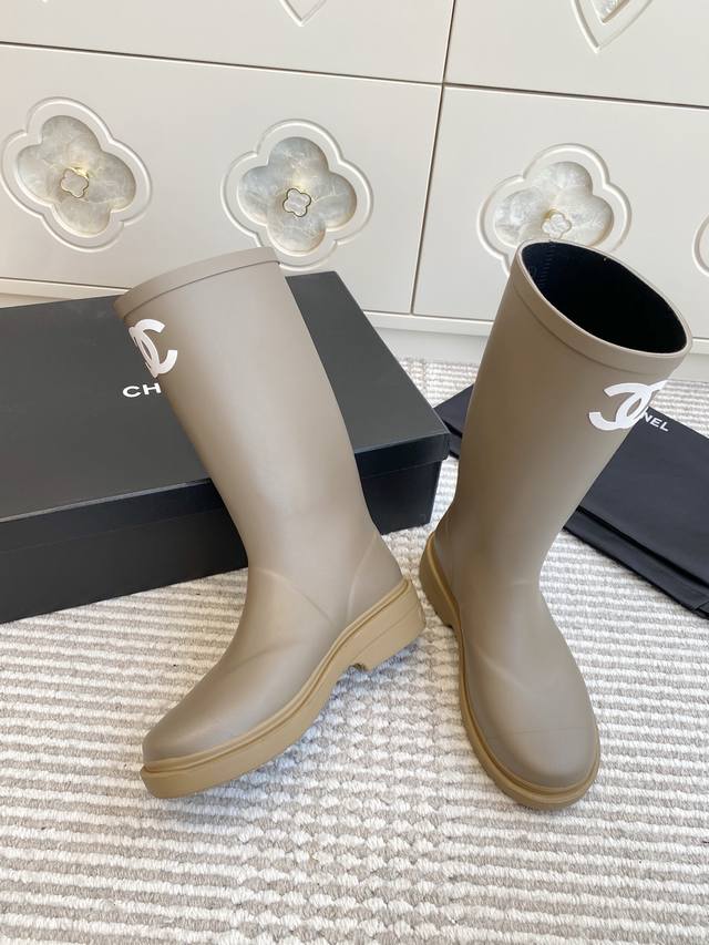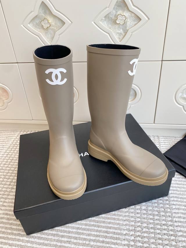 FFF Chanel小香 橡胶防滑雨靴 拼色长筒靴 DDD 采用防水橡胶材质,兼具实用性与耐用性,适配雨天等潮湿场景经典黑白配色+品牌双C标识,风格简约高级,自带轻奢质感。鞋型是中筒款式,靴口和鞋头的撞色设计增加细节层次,不单调 DDD 厚底鞋型兼顾舒适脚感与轻微增高效果,日常行走轻松。设计融合时尚与功能性,既能作为雨具使用,也可作为日常造型单品。 DDD 鞋面:橡胶 DDD 内里:棉毛布 DDD 大底:橡胶大底 DDD 增高:3.5Cm DDD Size:35-41码 40 41码定制不退换 DDD