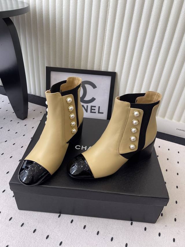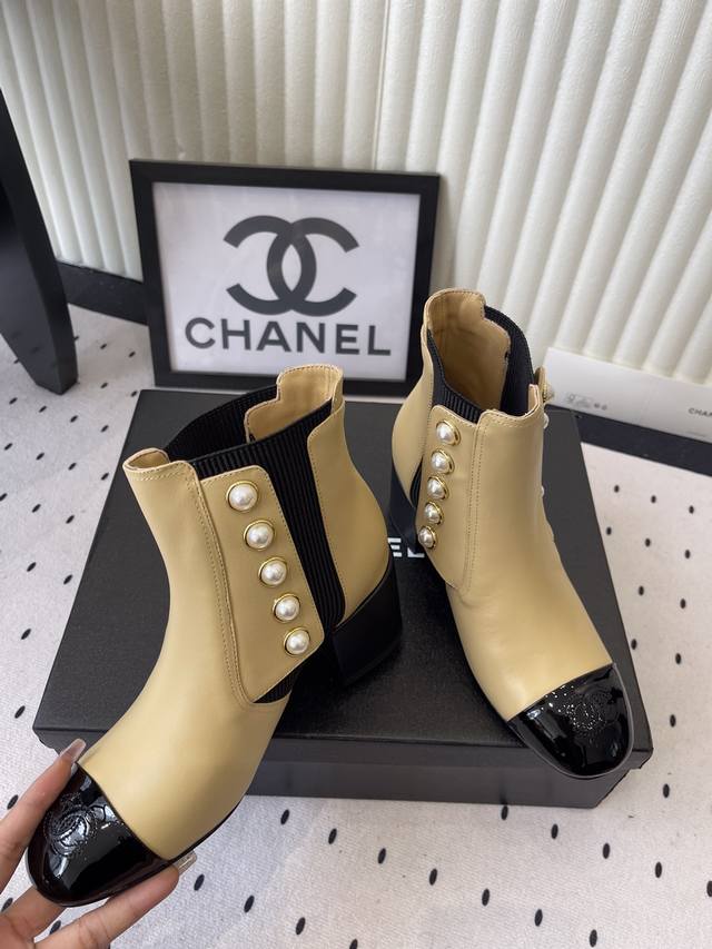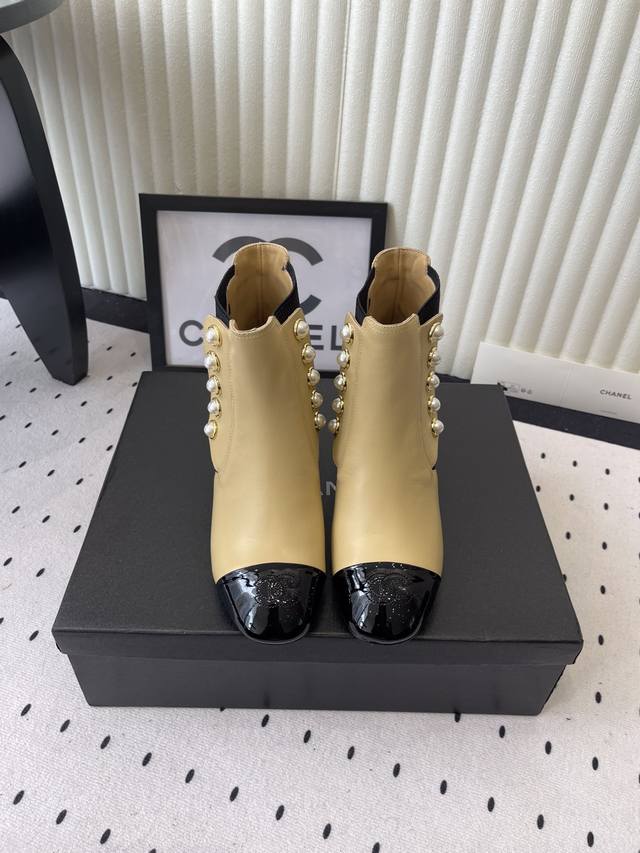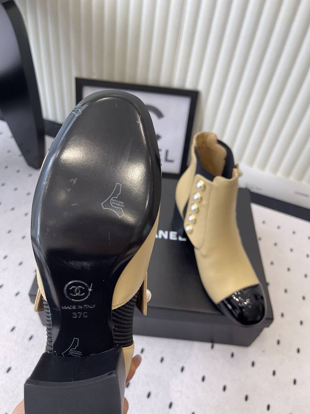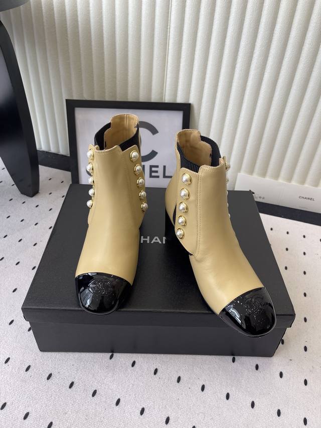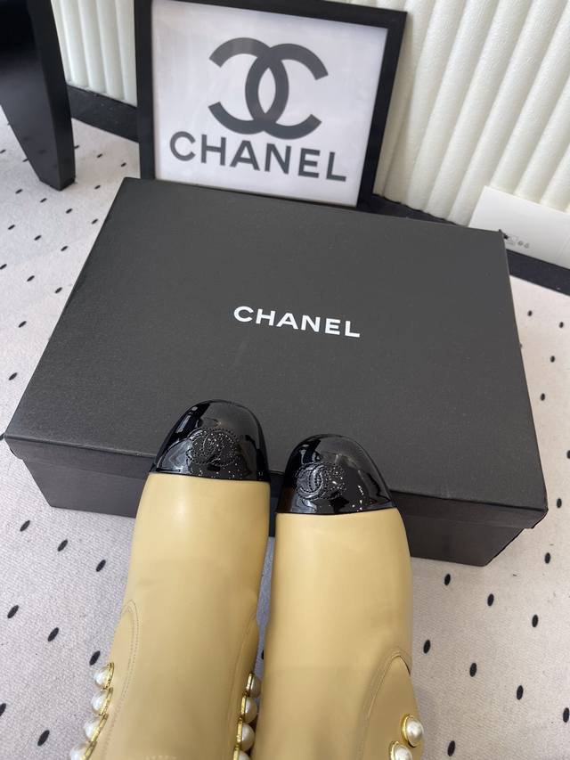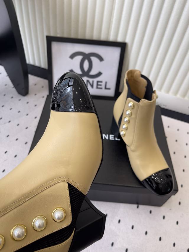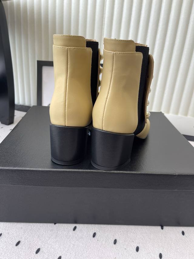 Chanel新款秋冬机车靴 小香家超级经典的一款机车靴 上脚轻松增高又拉长腿型 搭配珍珠洋气又时髦 进口头层牛皮鞋面 羊皮内里垫脚 跟高:6.5 意大利真皮大底