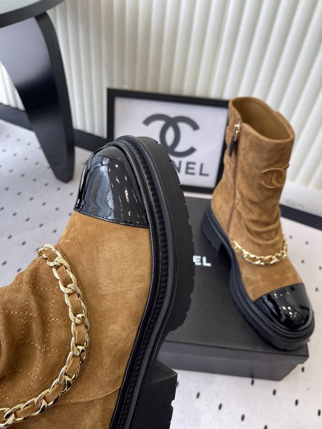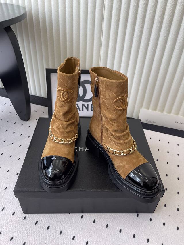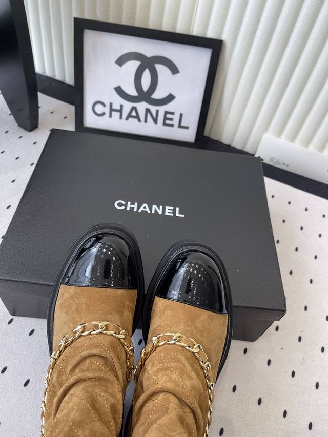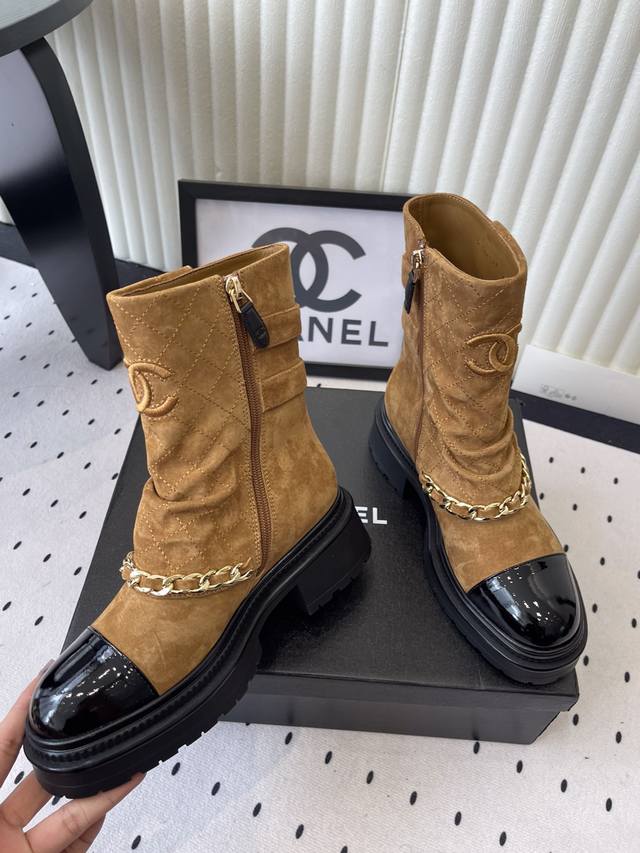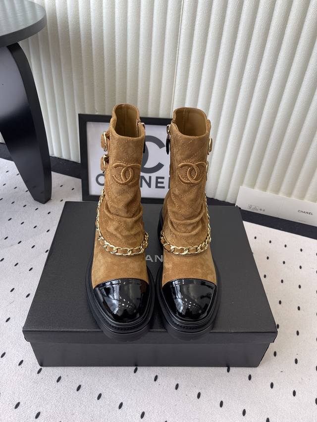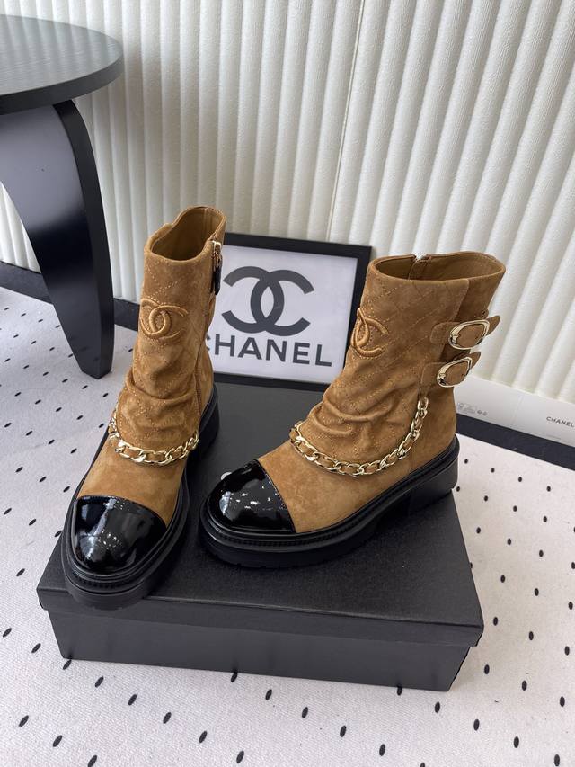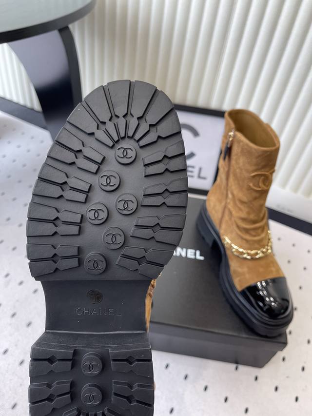 / Chanel新款秋冬机车靴 小香家超级经典的一款机车靴 上脚轻松增高又拉长腿型 搭配链条洋气又时髦 进口牛京链条鞋面 羊皮内里垫脚 原版开模大底 Size: 3
