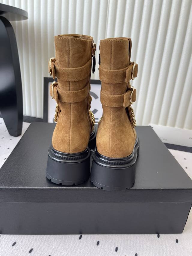 Chanel新款秋冬机车靴 小香家超级经典的一款机车靴 上脚轻松增高又拉长腿型 搭配链条洋气又时髦 进口牛京链条鞋面 羊皮内里垫脚 原版开模大底 Size: 35-39 40 41订做 DDD