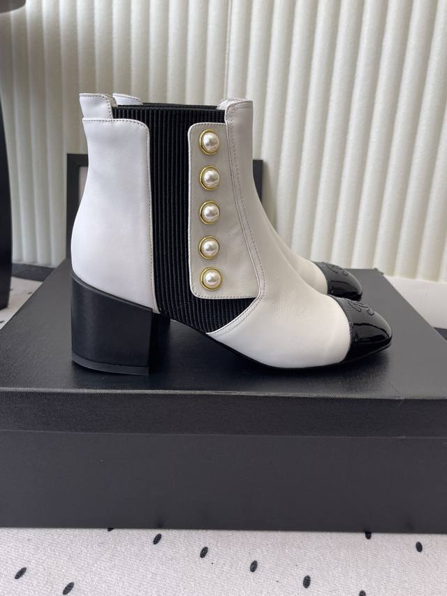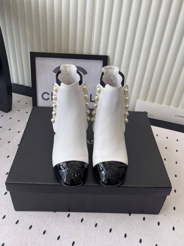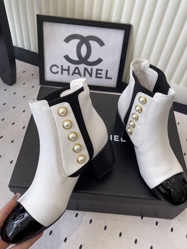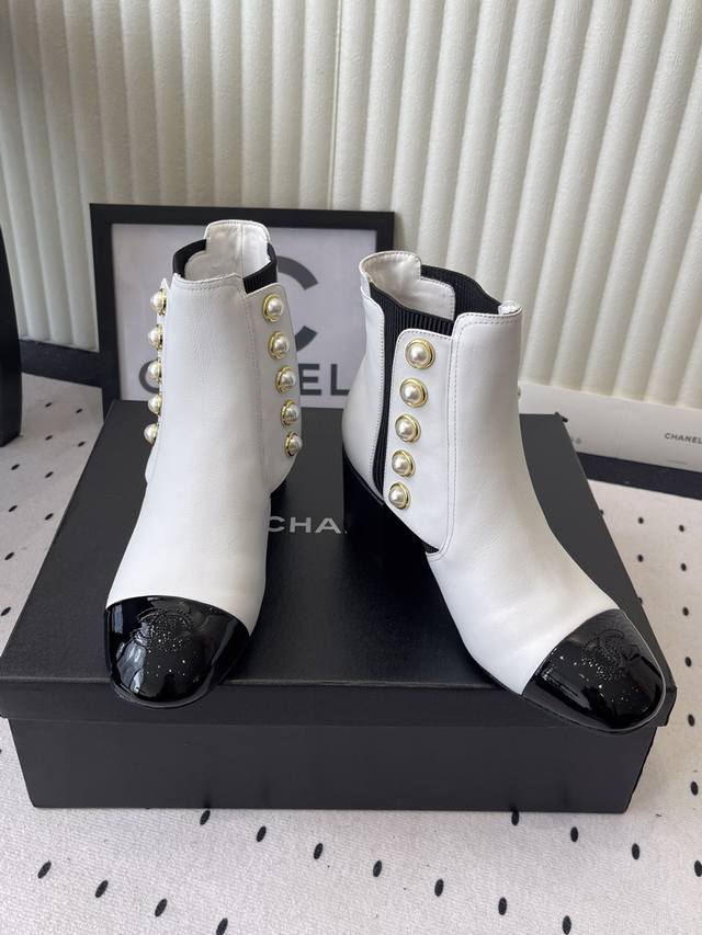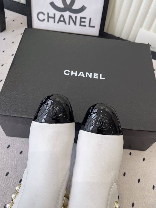 Chanel新款秋冬机车靴 马丁靴 小香家超级经典的一款机车靴 上脚轻松增高又拉长腿型 搭配珍珠洋气又时髦 进口头层牛皮鞋面 羊皮内里垫脚 跟高:6.5 意大利