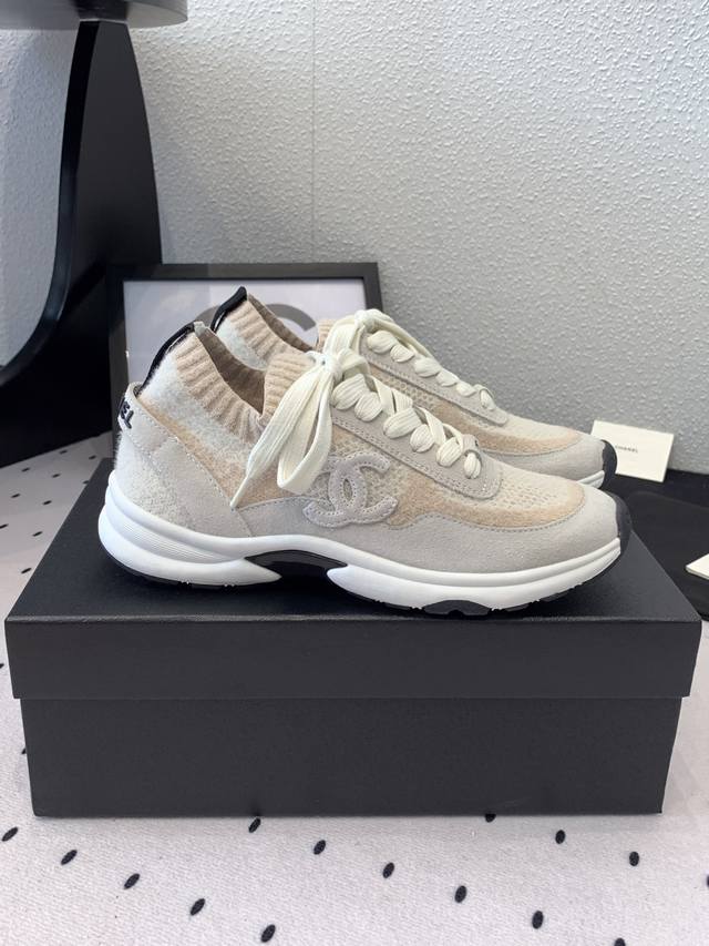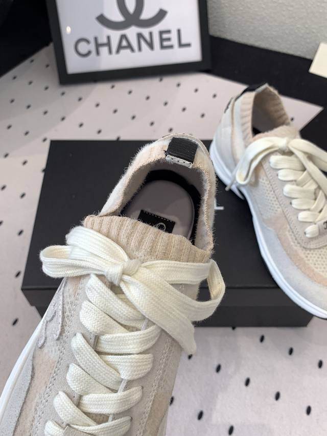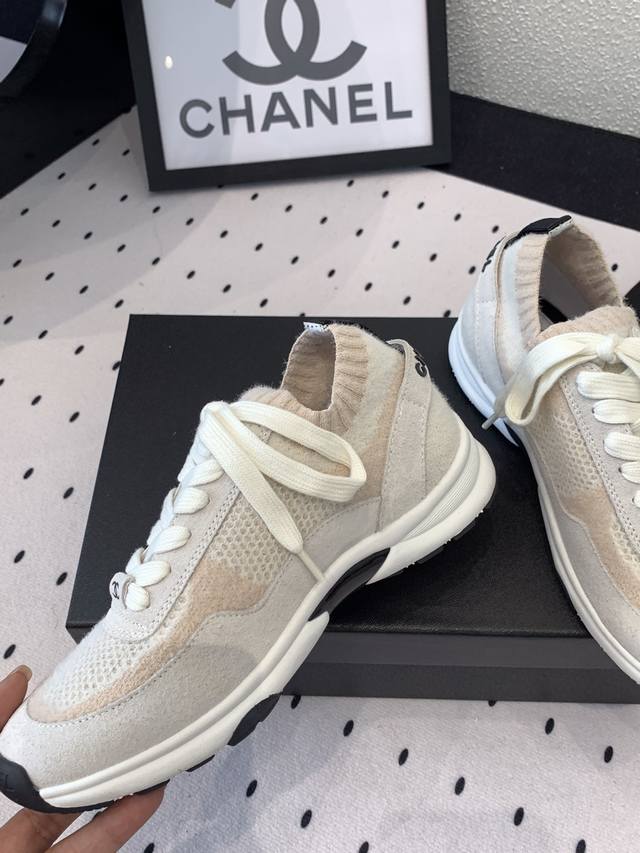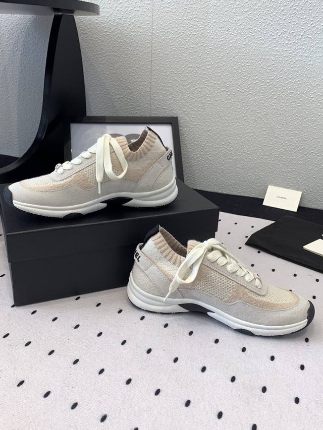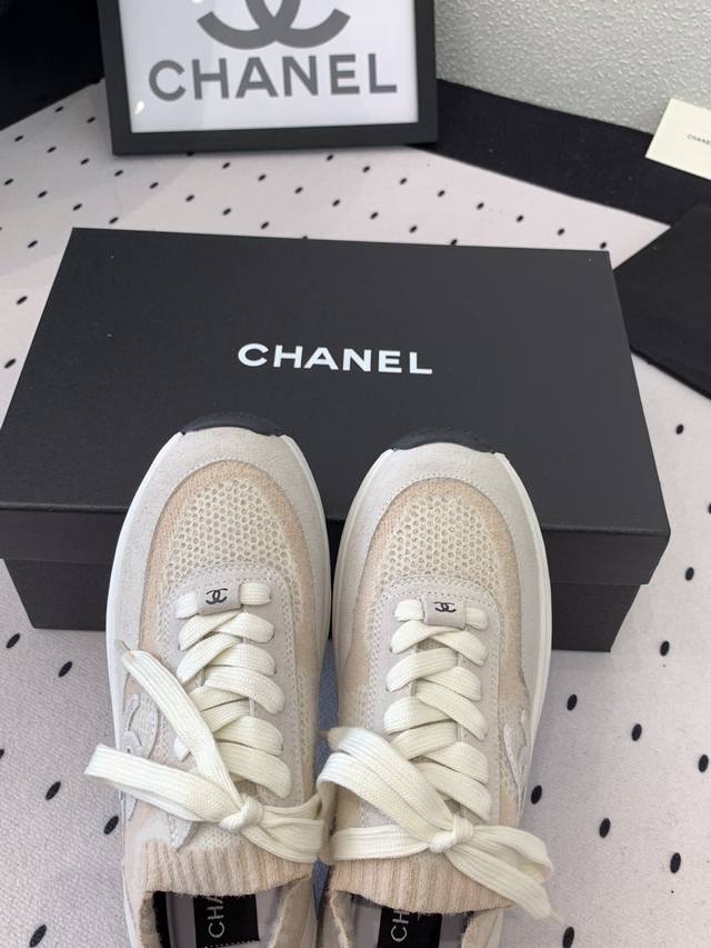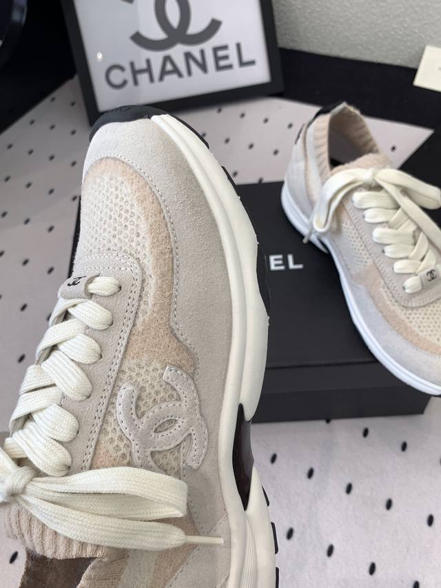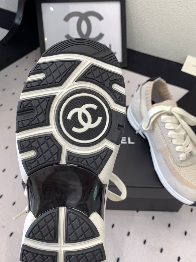 Chanel新款飞织运动鞋 原版购入开发 经典设计 清新的配色干净清爽 高丝光牛反绒+双色飞织面料 原版开模Tpu组合双色大底 Size :35-40 DDD