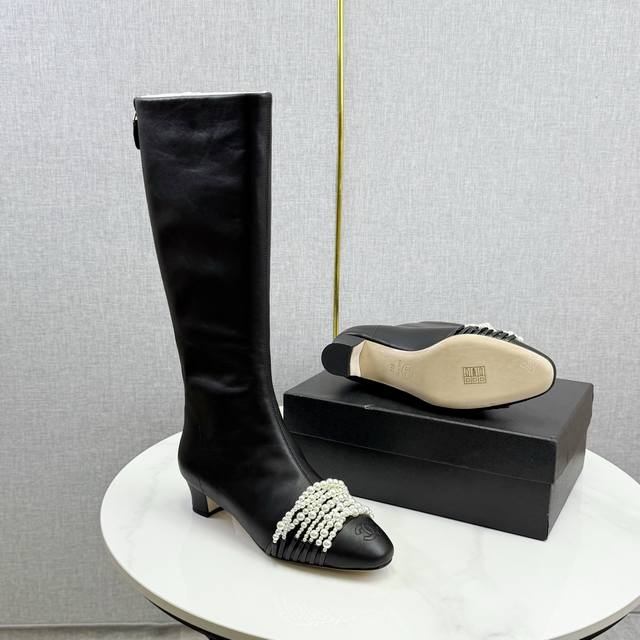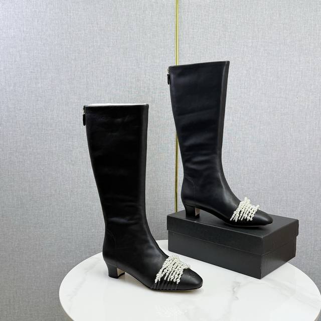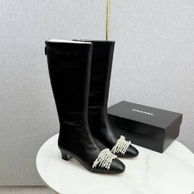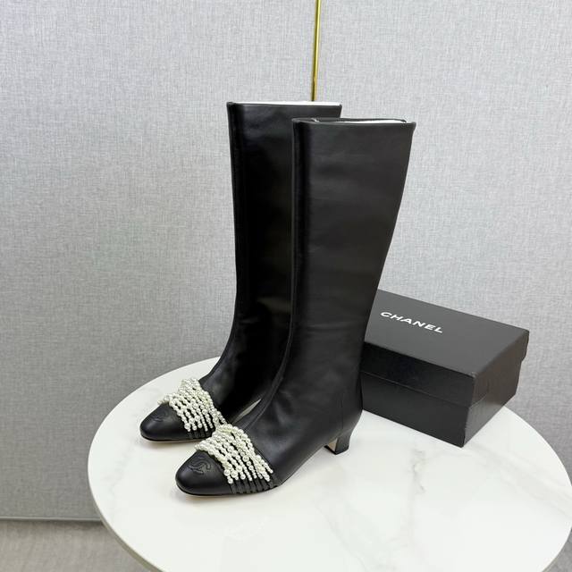 Chanel独家版本香奈儿珍珠长靴高靴 DDD 鞋面进口小牛皮,细腻而且不容易起死折印 DDD 内里水染牛皮,整个鞋筒是一块很大的格版直接到筒口皮料的用量很大 ,大底,意大利真皮大底 DDD Size:35-39 40定做不退换 DDD 价格p: DDD