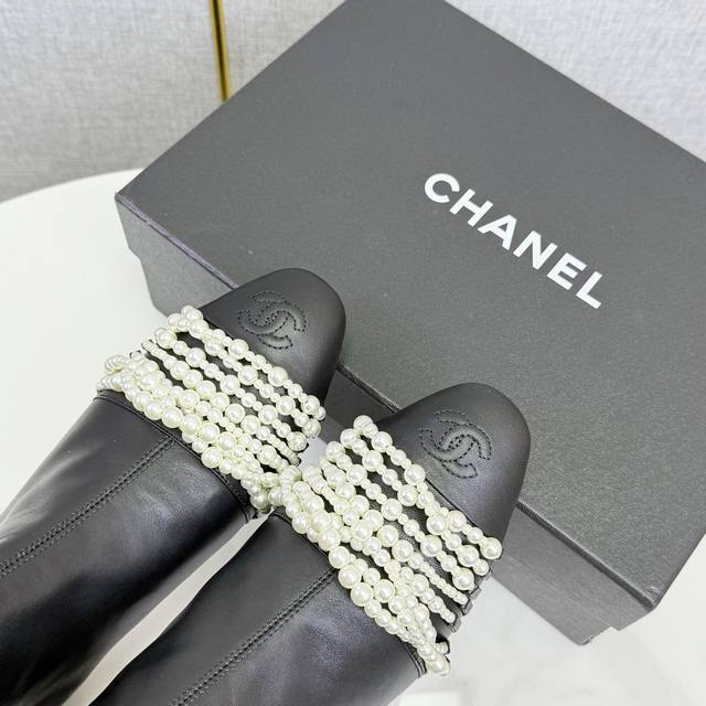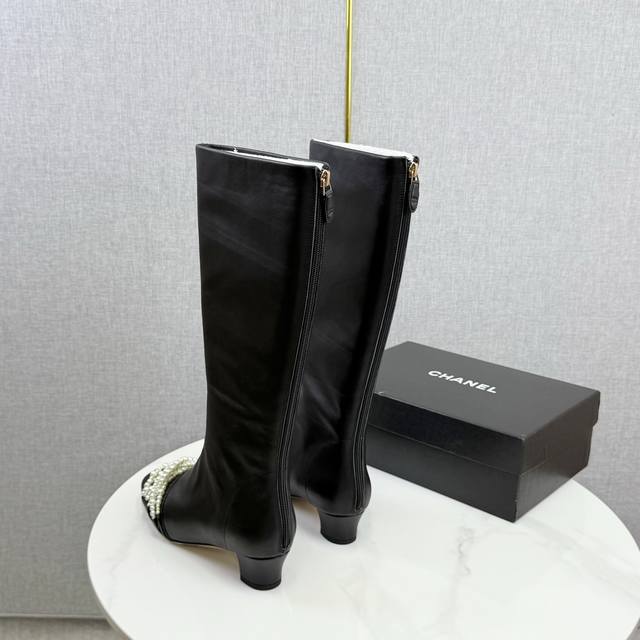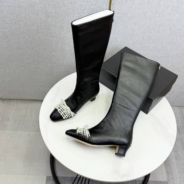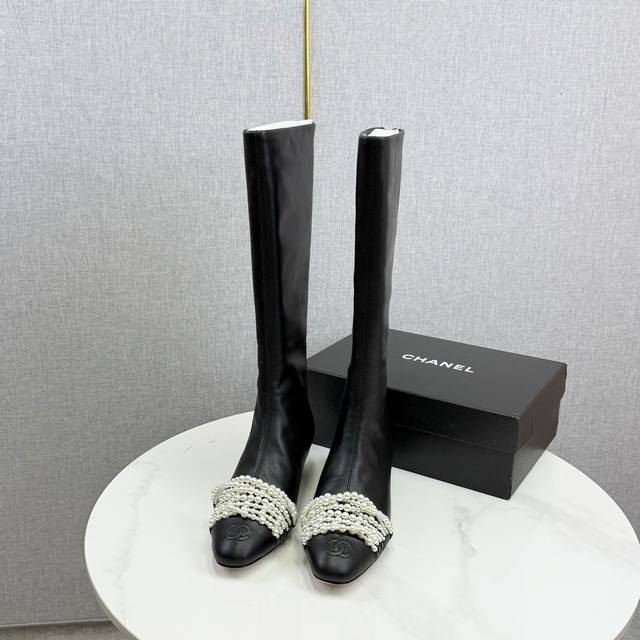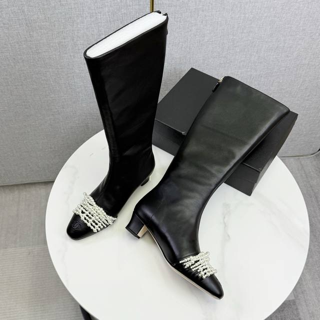 / Chanel独家版本香奈儿珍珠长靴高靴 鞋面进口小牛皮,细腻而且不容易起死折印 内里水染牛皮,整个鞋筒是一块很大的格版直接到筒口皮料的用量很大 ,大底,意大利真
