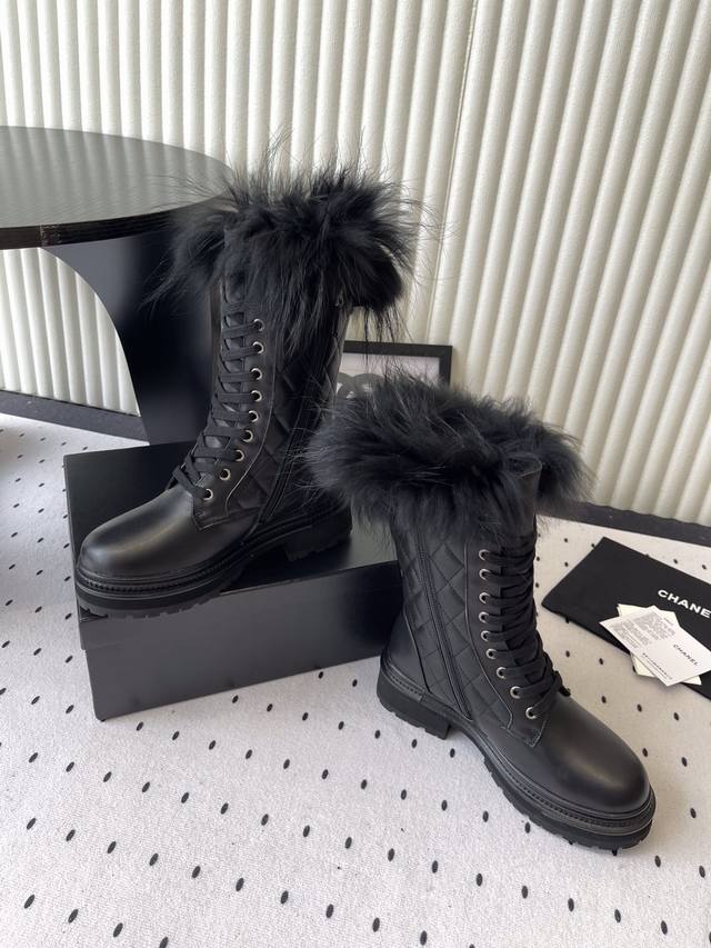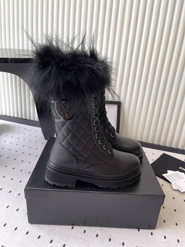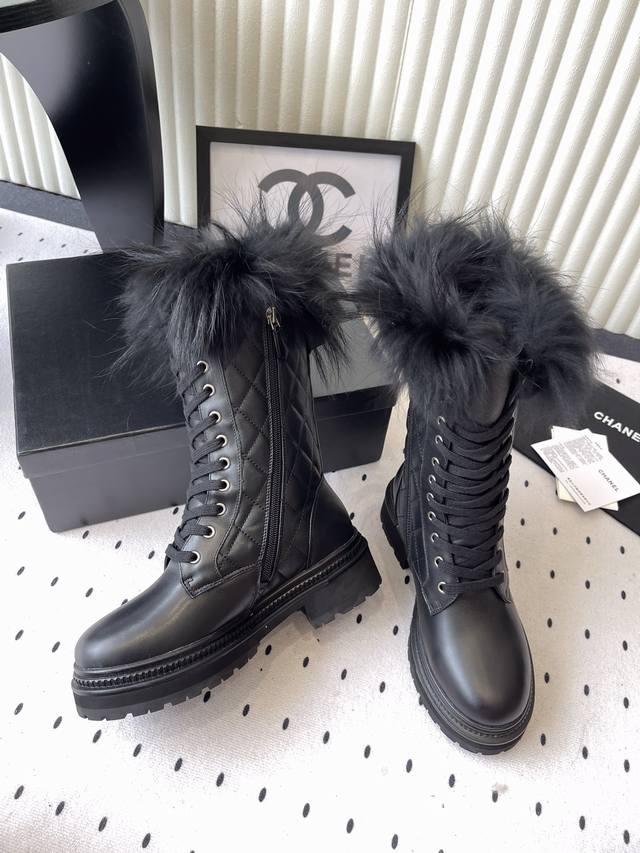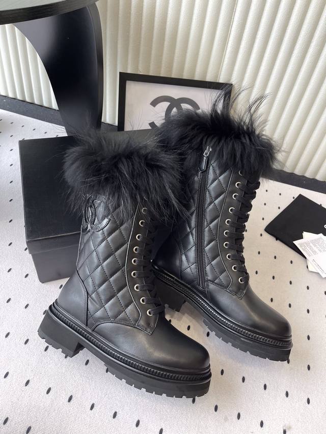 / Chanel秋冬新款厚底中靴,分别用进囗牛皮打造,靴囗上还增加了一圈貂毛,外增高度5Cm超显腿长,小美美特别喜欢,这是香奈儿今年秋冬打造的爆款,加上整个靴用全粒