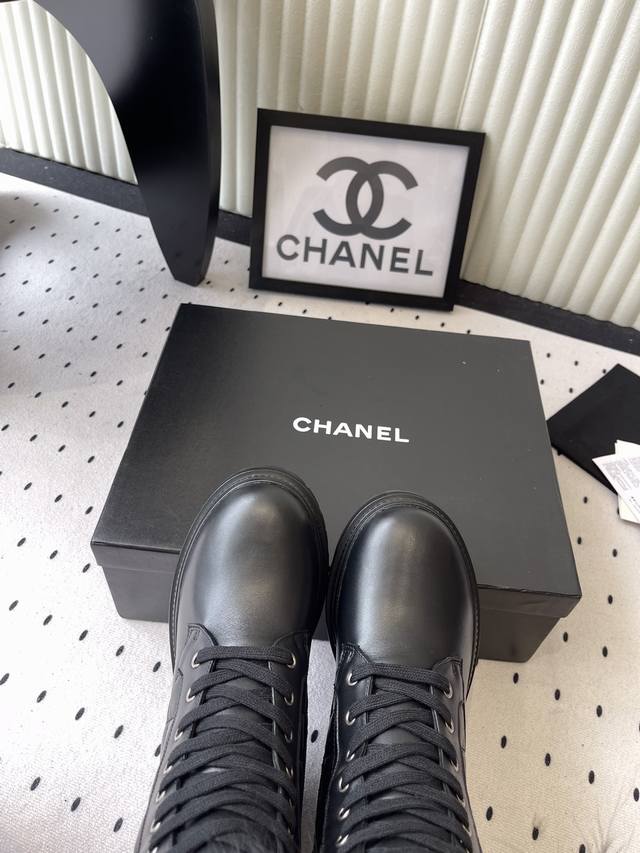 代购级 Chanel 25Ss 秋冬系列 粗跟 水台短靴 非常火的大双C设计手工车线非常耗时耗力 独特大底双拼做法...