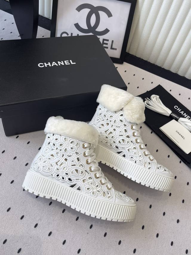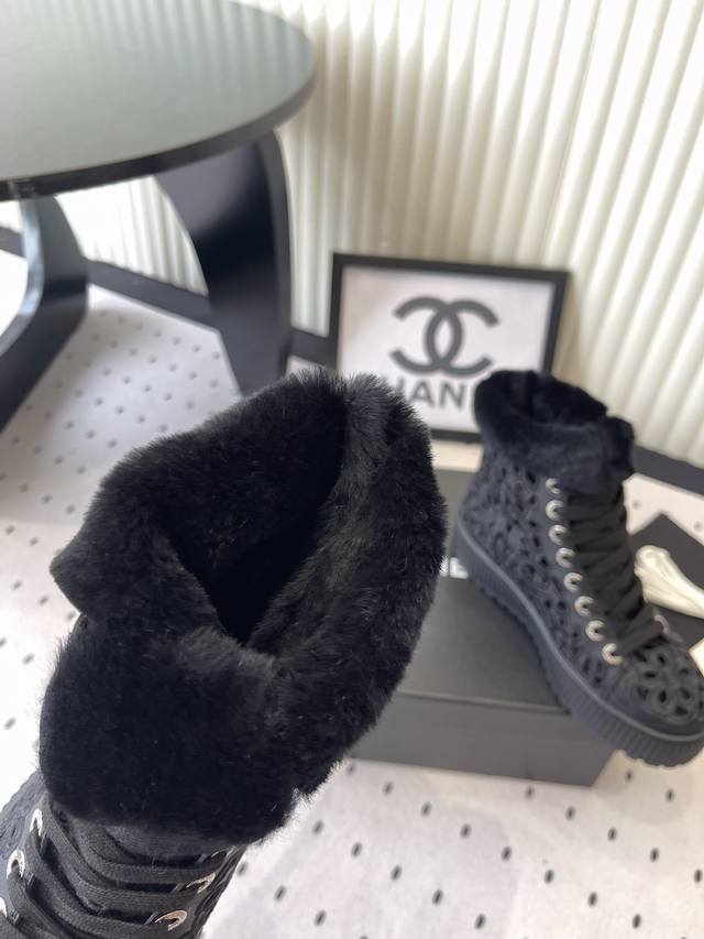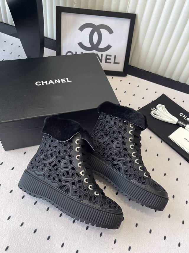 / Chanel秋冬新款镂空短靴 鞋面经典雕花刺绣,靴简沿用了香奈儿的经典搭配,小美美特别喜欢,这是香奈儿今年秋冬打造的爆款,容易上脚,超级舒服,今年秋冬必备款 鞋
