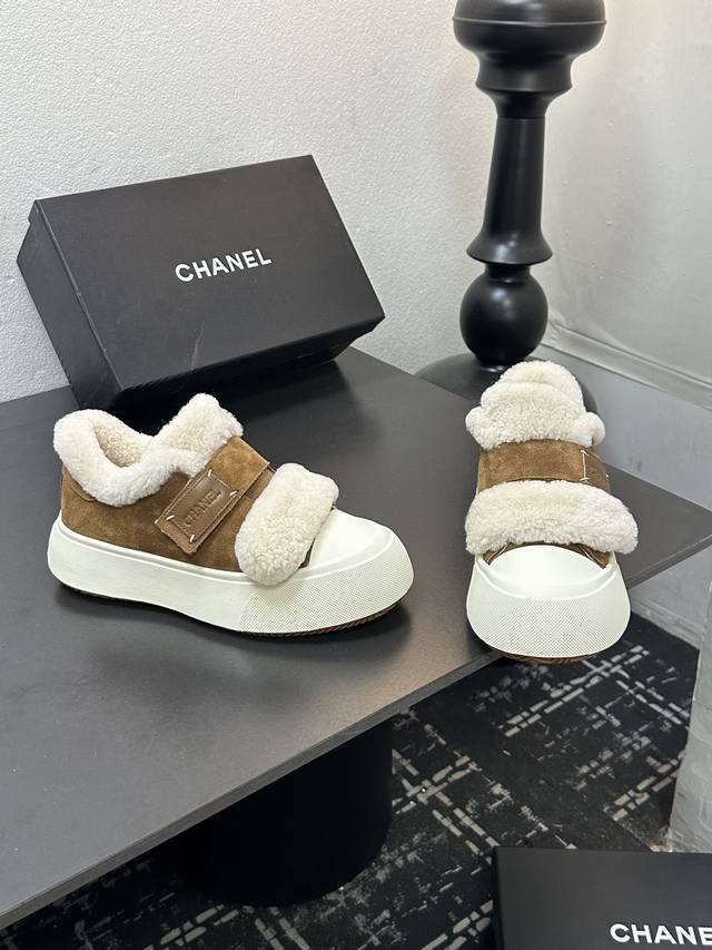 Chanel香奈儿厚底羊毛魔术贴保暖鞋饼干鞋 DDD 专柜同步 专柜非常火爆 非常难买的一款鞋 全网最火的厚底熊猫鞋 可想而知小香控不可错过的 颜值与舒适并存的 简约百搭小白鞋 厚底增高超级百搭,闭眼入谁穿谁好看 DDD 鞋面:磨砂牛皮 DDD 内里:羊毛里 DDD 大底:Tpu原版大底 DDD 码数: 35-39 40定做 DDD