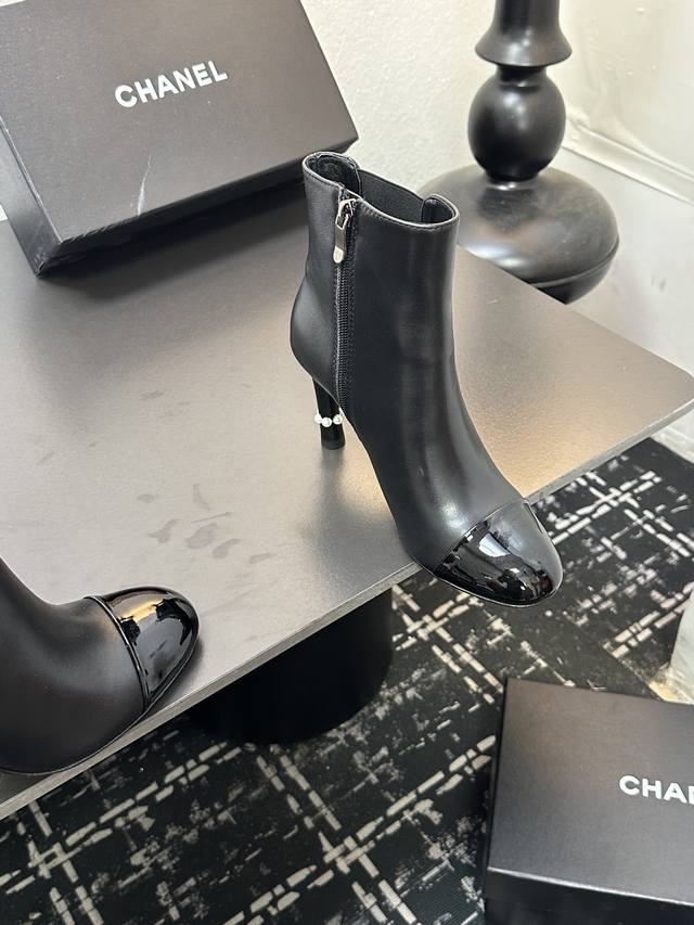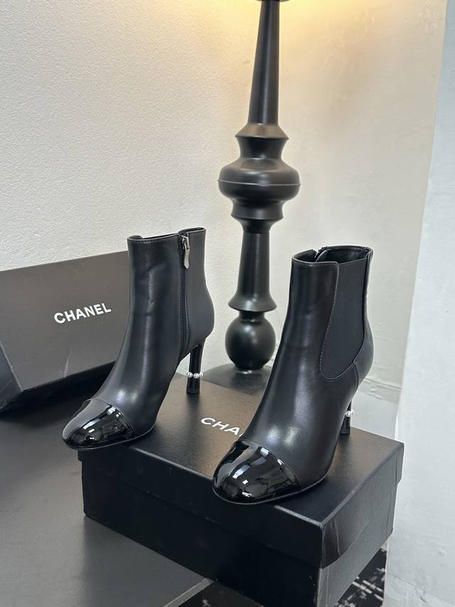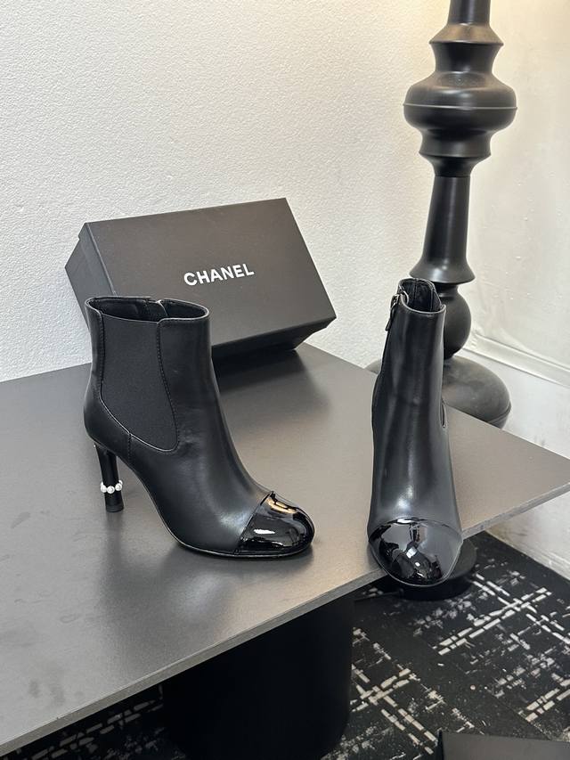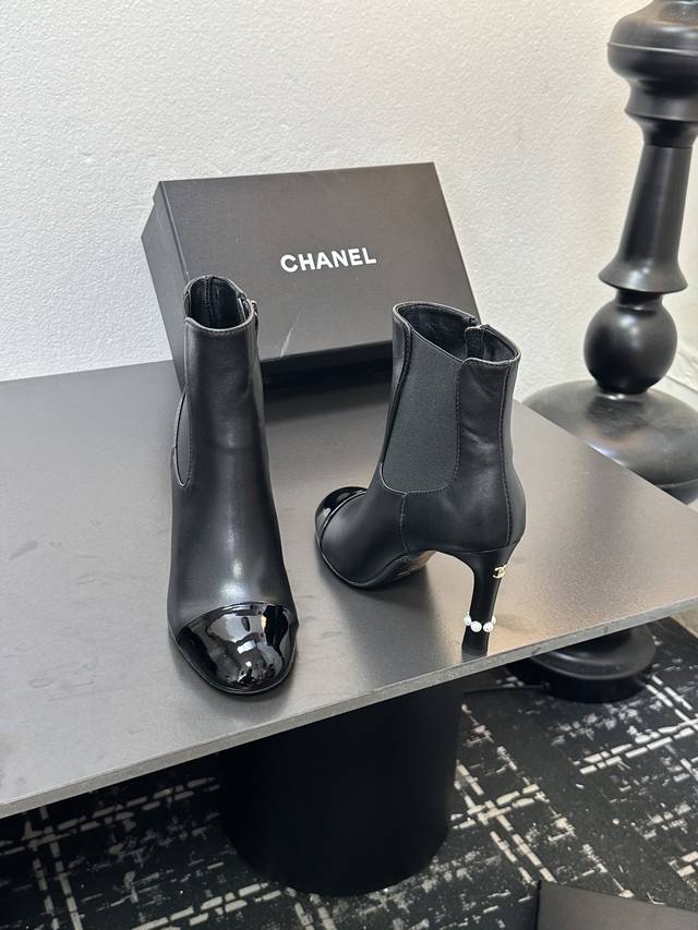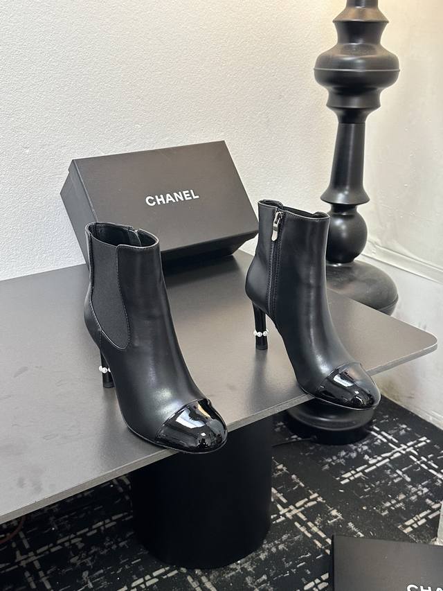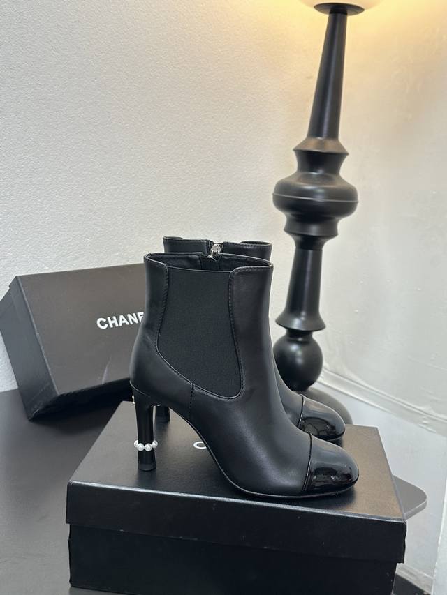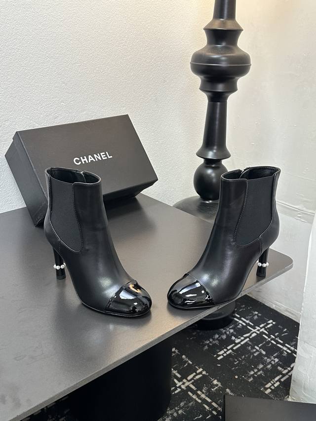 Chanel香奈儿小香经典拼色珍珠跟高跟松紧短靴切尔西靴 经典拼色设计 利落大气 恰似可可 香奈儿女士对简洁与精致的执着追求 轻松适配职场正装、休闲出游 或是晚