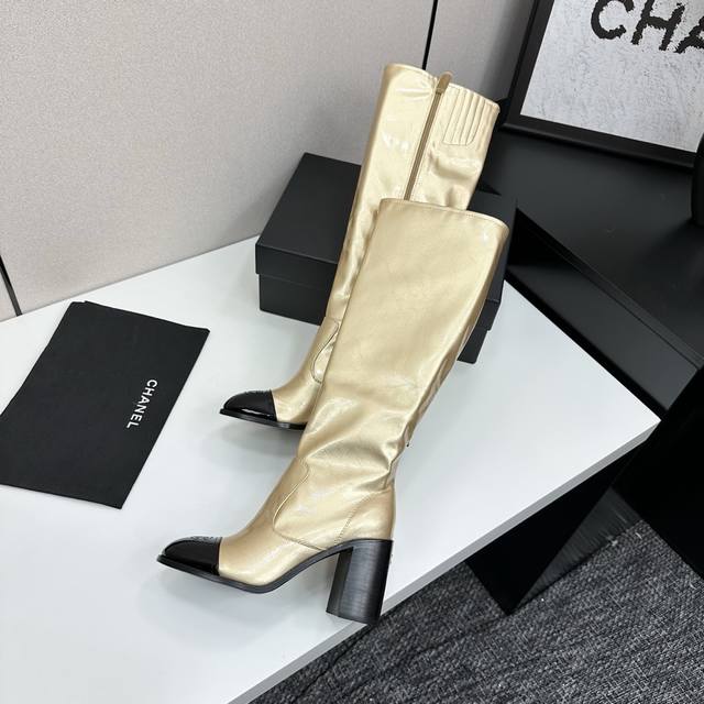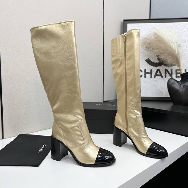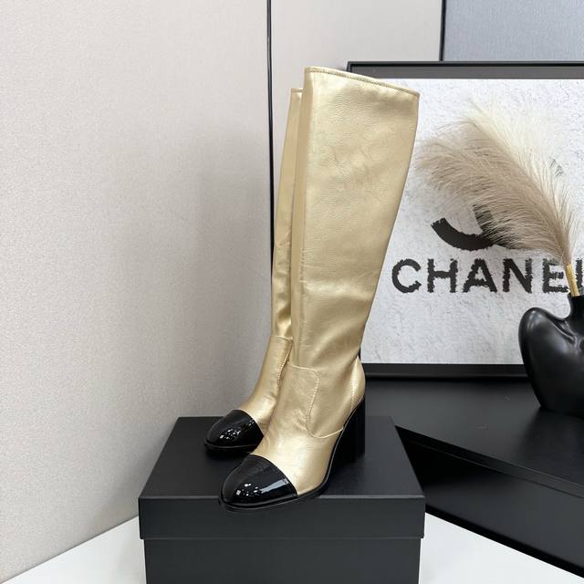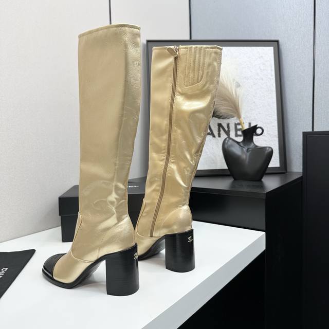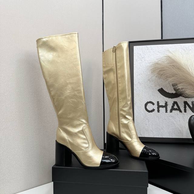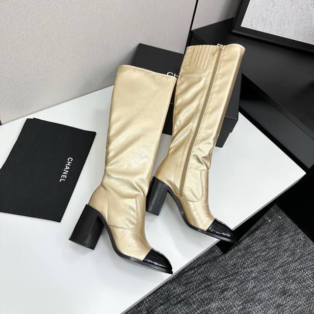 Chanel香奈儿小香经典粗跟侧拉链短靴 这双靴子巧妙融合品牌标志性元素 以大胆而和谐的拼色设计 打破常规 鞋跟处精致的双C 低调奢华 彰显品牌底蕴 。 无论是搭配简约连衣裙展现优雅气质 还是与个性牛仔裤组合打造休闲时尚风 它都能轻松驾驭 为整体造型注入高级时尚感。 面料采用原版定制材质 内里垫脚均为羊皮 意大利进口真皮大底 Size:35-39 40 41定制