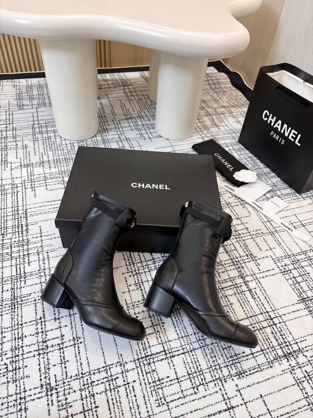 / Chanel香奈儿小香经典粗跟后拉链短靴 这双靴子巧妙融合品牌标志性元素 以大胆而和谐的拼色设计 打破常规 鞋跟处精致的双C 低调奢华 彰显品牌底蕴 。 无论是