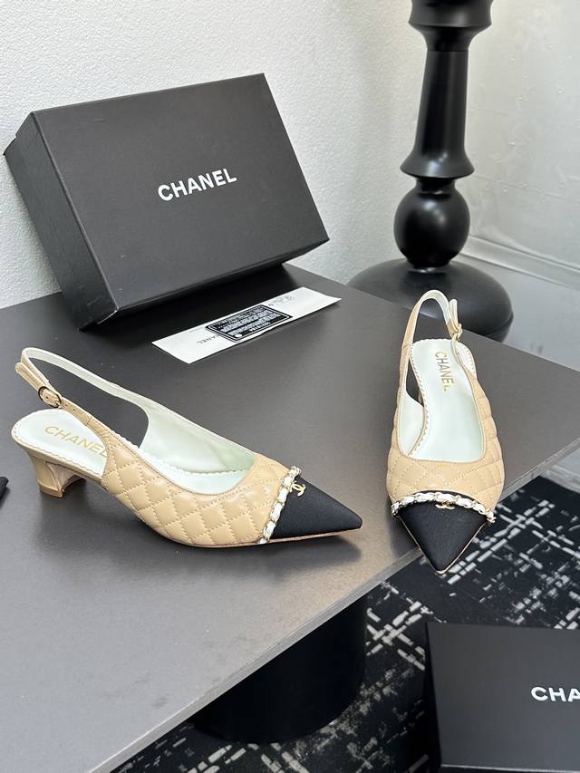 / chanel~~香奈儿小香风2025新款低跟拼接女鞋尖头链条后空凉鞋,经典百搭,T台秀种草款,小红书达人打卡款,超级受棒的一款中跟凉鞋 玛丽珍复古风真的是好看又