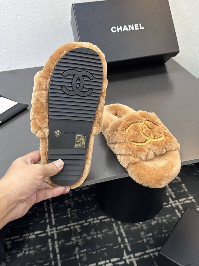 Chanel香奈儿小香风25S毛毛拖羊毛拖,早秋系列火爆上新,这一季香家小爆款! 真的一眼爱了,经典拼色完美搭配! 真的超级有个性,是这款鞋子最大的亮点,醒目而