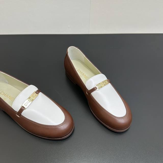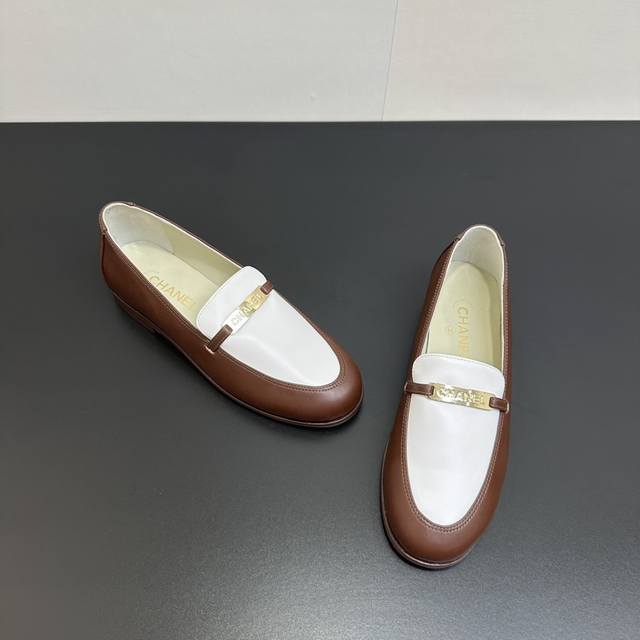 Chanel香奈儿小香2025官网香奈儿早春四季金属扣平底拼接单鞋,系列新品乐福鞋满满的复古风 秀气的鞋型 看着就很讨喜,小方的鞋头 衬托脚也变得瘦瘦的,上脚给人就是一种年代的复古情怀四季鞋、欧美走秀新款,爆款产品 面料:羊皮 内里:羊皮 大底:真皮大底. 码数35-41 40 41定做不退换