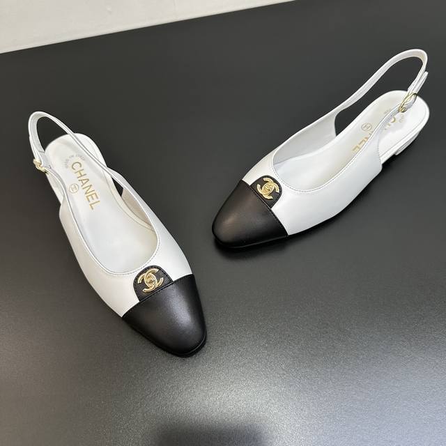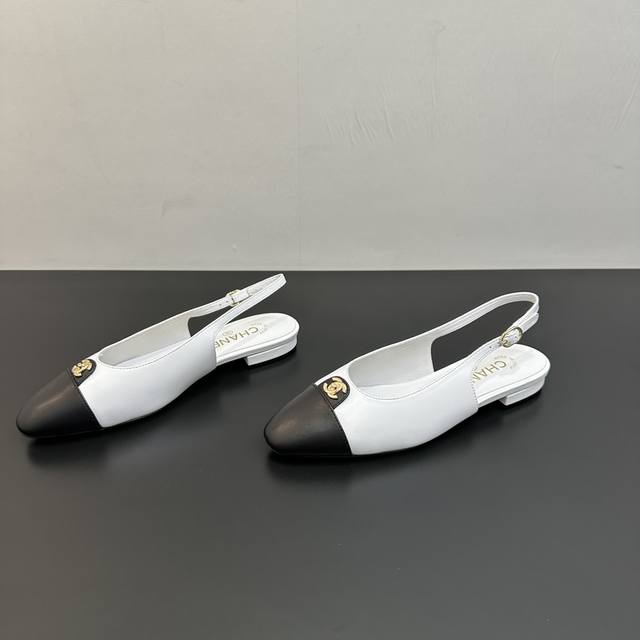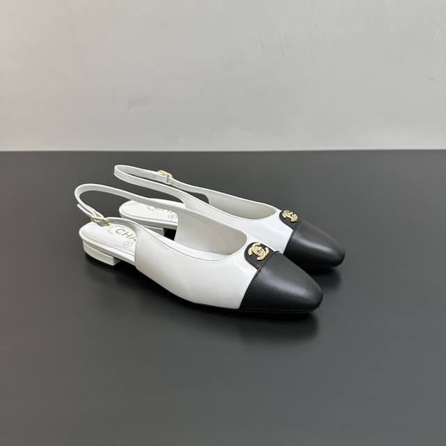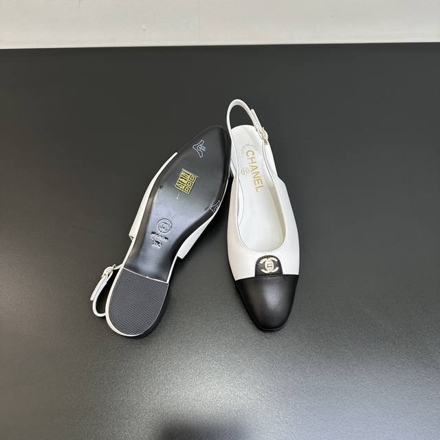 Chanel香奈儿|小香25P新品经典 双C粗跟后空拼色拼接凉鞋! 鞋面采用羊皮 内里踮脚均为丝绸羊皮 意大利进口牛皮大底 跟高:1Cm Size:35-39