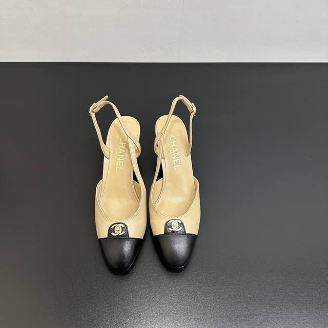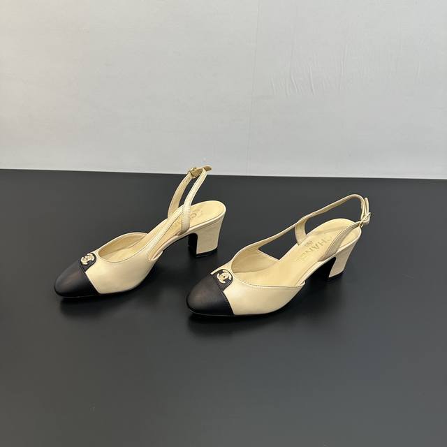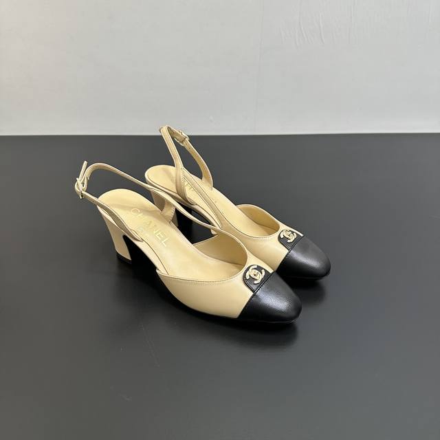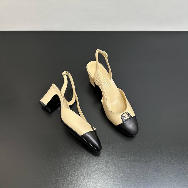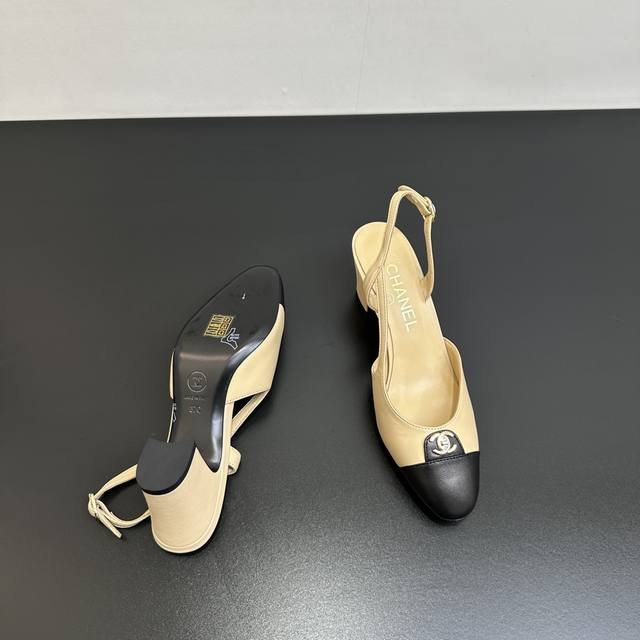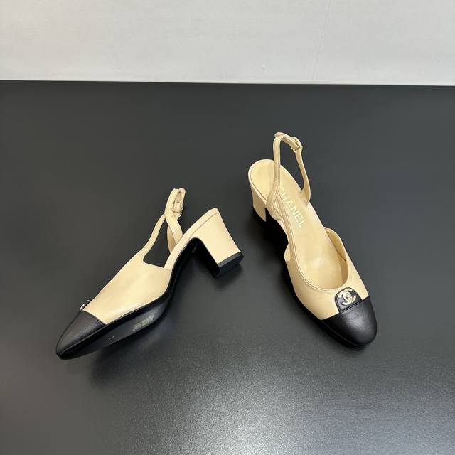 Chanel香奈儿|小香25P新品经典 双C粗跟后空拼色拼接凉鞋! 鞋面采用羊皮 内里踮脚均为丝绸羊皮 意大利进口牛皮大底 跟高:6Cm Size:35-39