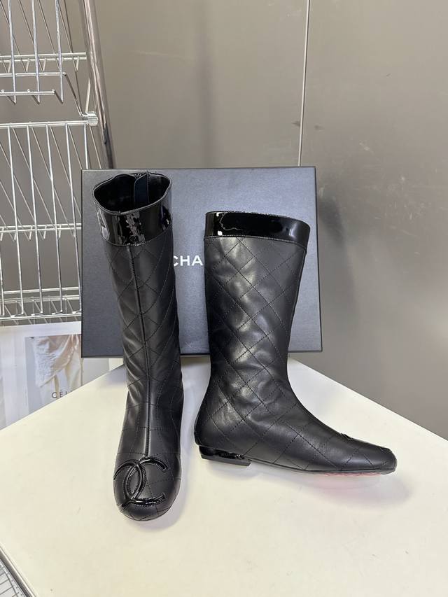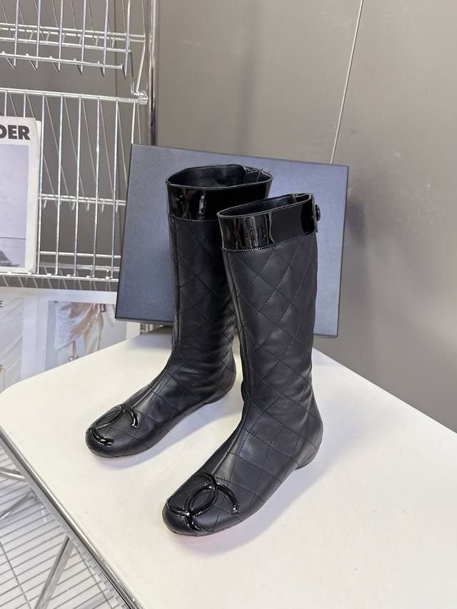 厂价 Chane*|小香25K秋冬新品拼色粗跟长靴 当香家长靴邂逅冬日 时尚与温暖共绽。 漆皮的光泽如夜的深邃...