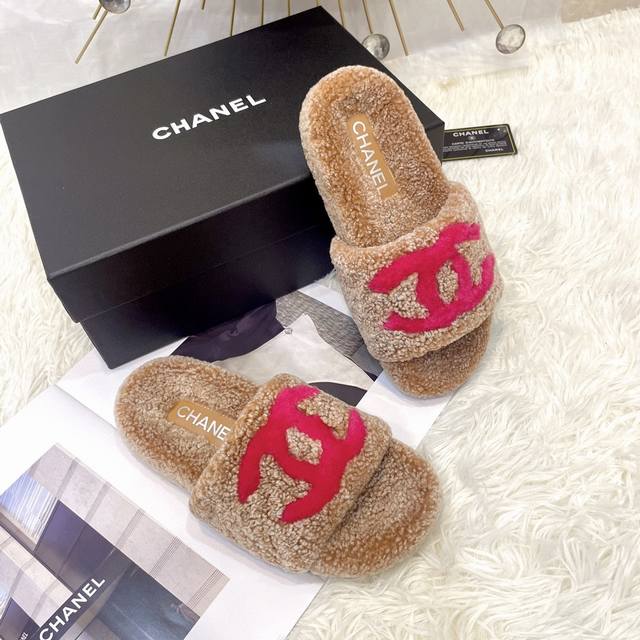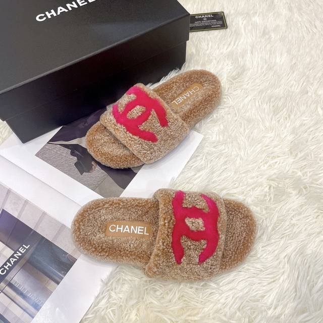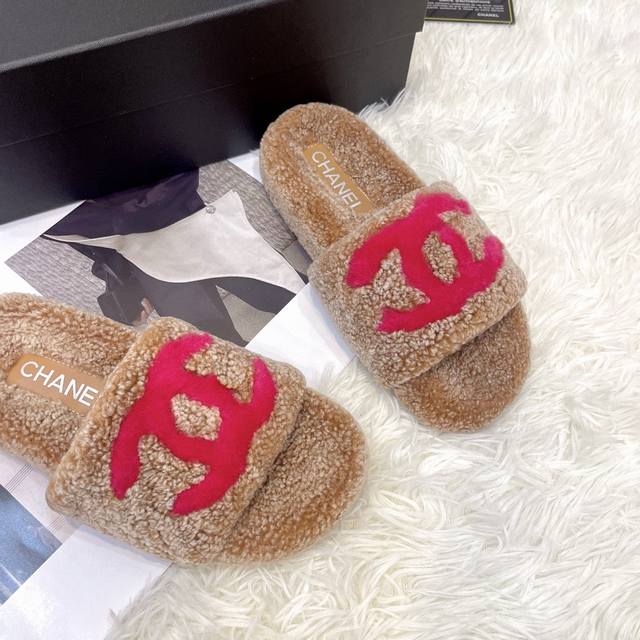 Chanel香奈儿毛毛拖 染色工艺 早秋休闲毛拖 双C系列。独家开模大底 C#Logo 休闲搭百搭又时髦 节细决定品质 细腻,属于细水流长 越看越喜欢的类型 经典中的经典 走时髦高端路线一起去看看外面不一样世界............................. 鞋面:羊羔毛电绣 内里:羊羔毛 大底:防滑大底 码数: 35-39 40定做不退换