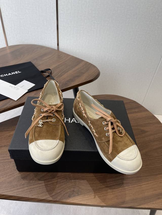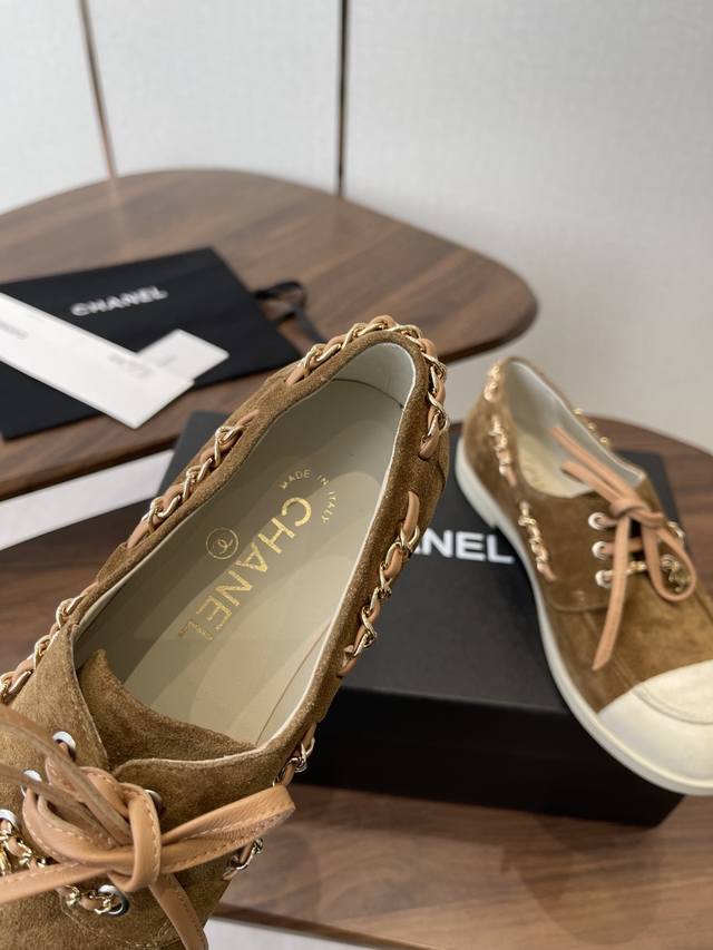 Chanel新款厚底运动鞋 顶级版 0早春新款双C方圆头系带休闲鞋 Logo 低调且高级感满满 鞋面:牛皮拼接牛反绒 内里:透气网面...