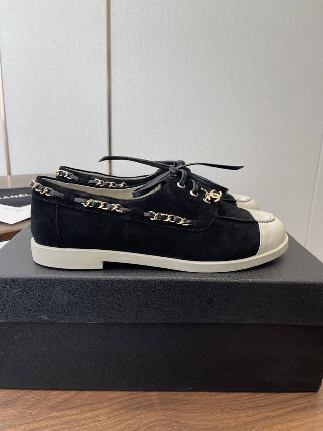 Chanel香奈儿 25K 秋冬 休闲 乐福鞋 DDD 原版购入开发 做货 小香 C家 专柜又一超级大爆款,网红博主小姐姐们的挚爱,社交平台的各种夸赞,人气超高质感透气超级春夏,看到这期总能唤起少女内心对时髦的诉求 最新麂皮材质 经典配色 上脚时髦感十足 容易打理 DDD 面料: 原版定制进口麂皮 内里:定制进口羊皮内里 鞋底:原版开模防滑橡胶材质 DDD Size : 35-41 40 41订做不退换 DDD