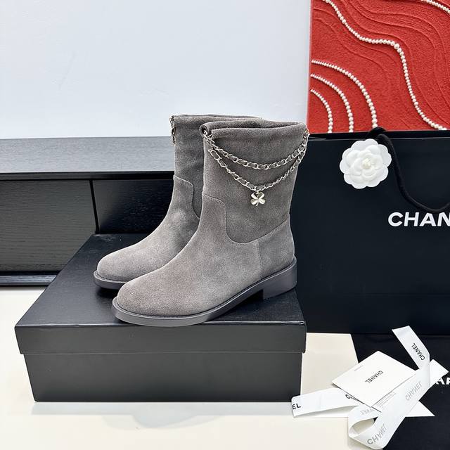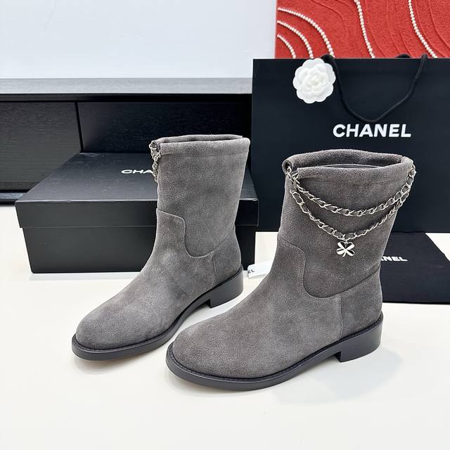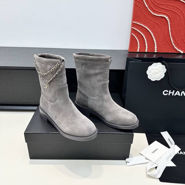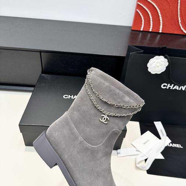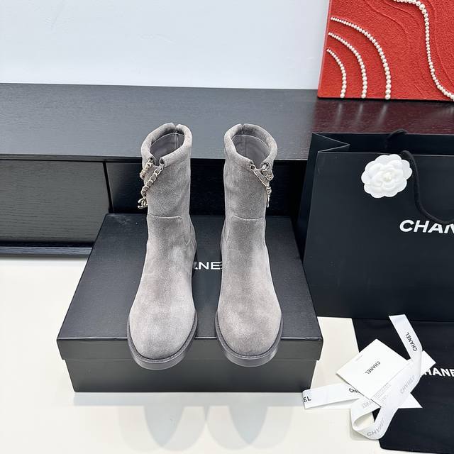 Chanel香奈儿25年早秋新款 小香家双C链条吊坠短靴子 鞋面:牛皮,真皮底 正码:35-39订做40
