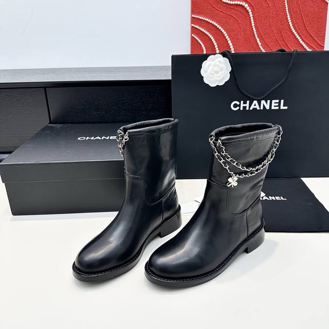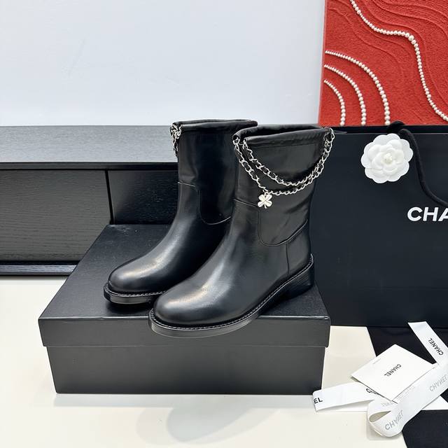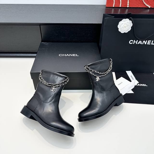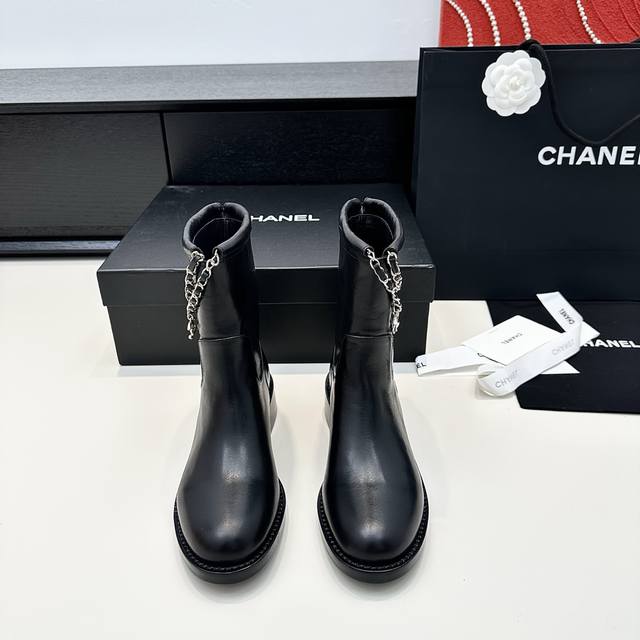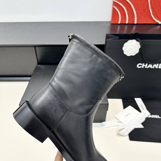 Chanel香奈儿25年早秋新款 小香家双C链条吊坠短靴子 鞋面:牛皮,真皮底 正码:35-39订做40