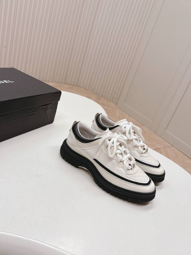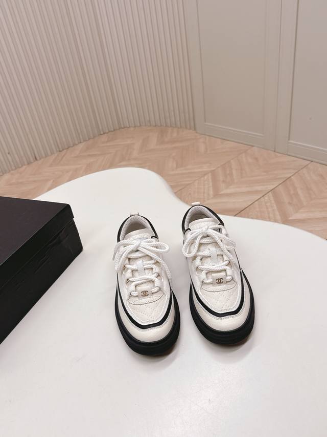 Chanel香奈儿新款牛皮面厚底饼干鞋熊猫鞋小白鞋 网红明星小红书狂追热推 显瘦显腿长 高颜值舒适增高5厘米 极简的风格...