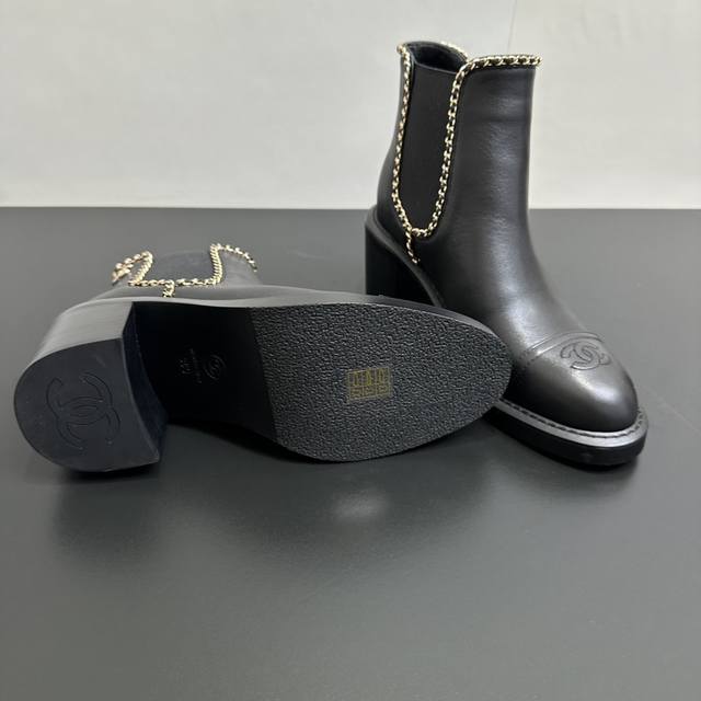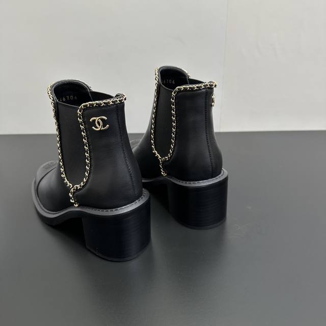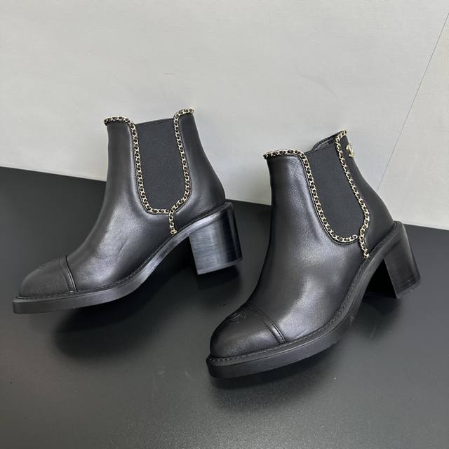 Chanel香奈儿25Ss 新款秋冬高跟链条松紧短靴 ,楦型百搭瘦脚Yyds.造型立体饱满,上脚舒适 气场十足,橡筋一脚蹬 易穿搭 经典链条五金 高级优雅 鞋面:羊皮 内里:羊皮 Size: 35-39 40.41定