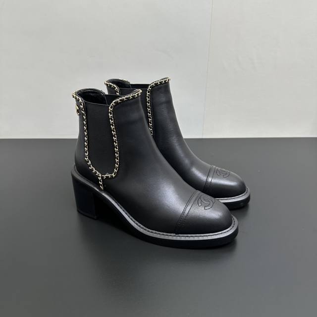 / Chanel香奈儿25Ss 新款秋冬高跟链条松紧短靴 ,楦型百搭瘦脚Yyds.造型立体饱满,上脚舒适 气场十足,橡筋一脚蹬 易穿搭 经典链条五金 高级优雅 鞋面