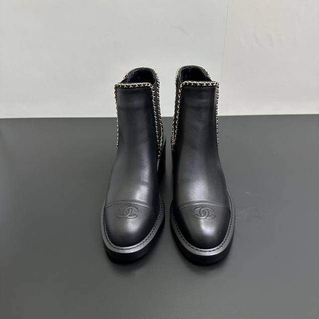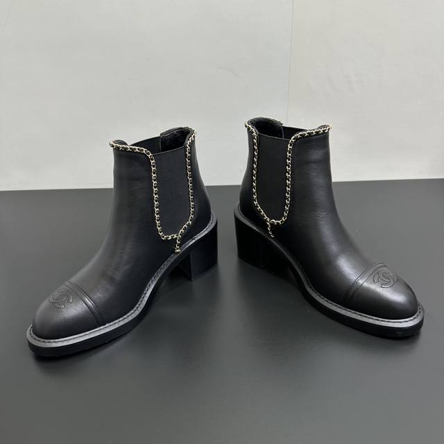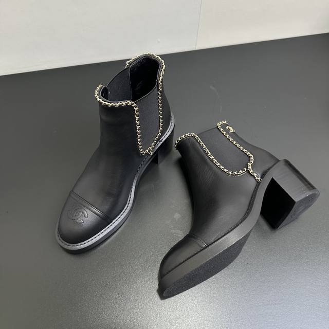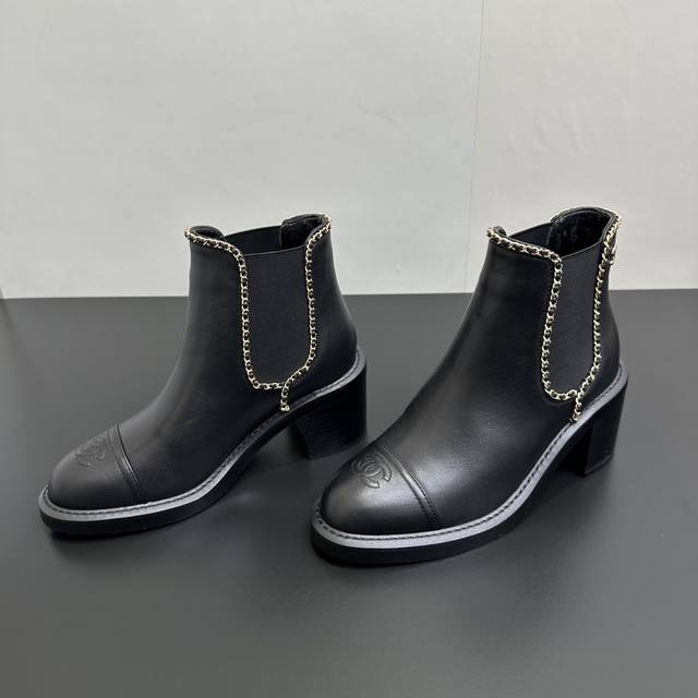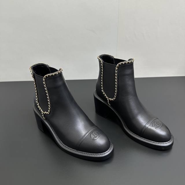 Chanel香奈儿25Ss 新款秋冬高跟链条松紧短靴 ,楦型百搭瘦脚Yyds.造型立体饱满,上脚舒适 气场十足,橡筋一脚蹬 易穿搭 经典链条五金 高级优雅 鞋面