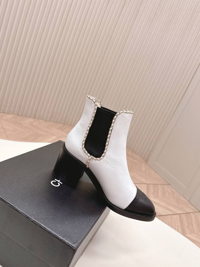 Chanel香奈儿25Ss 新款秋冬高跟马丁靴短靴 楦型百搭瘦脚Yyds.造型立体饱满,上脚舒适 气场十足,橡筋一脚蹬 易穿搭 经典链条五金 高级优雅 鞋面:牛