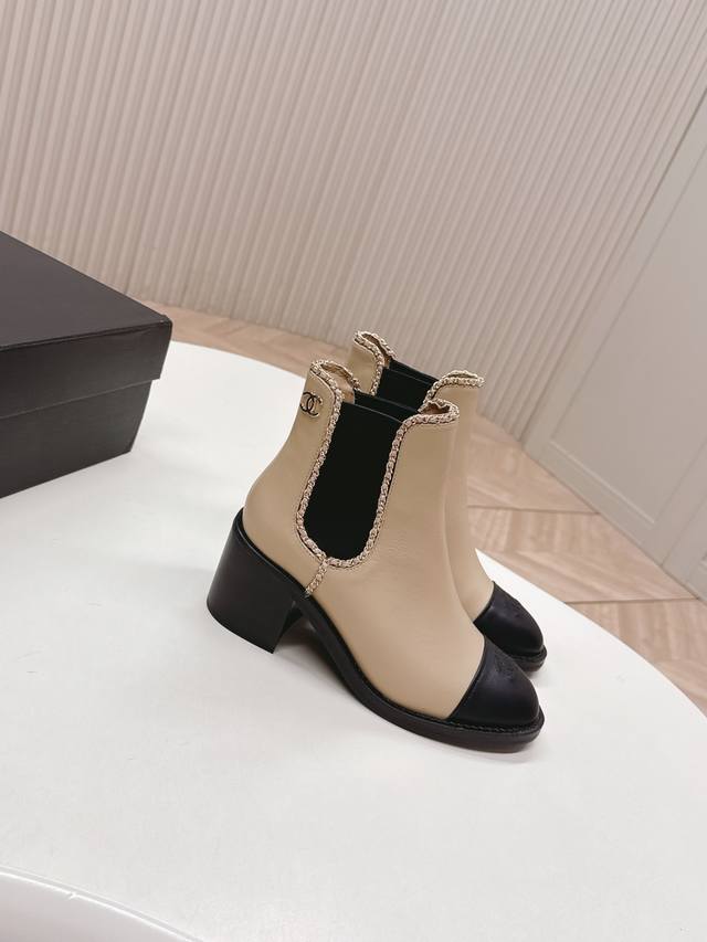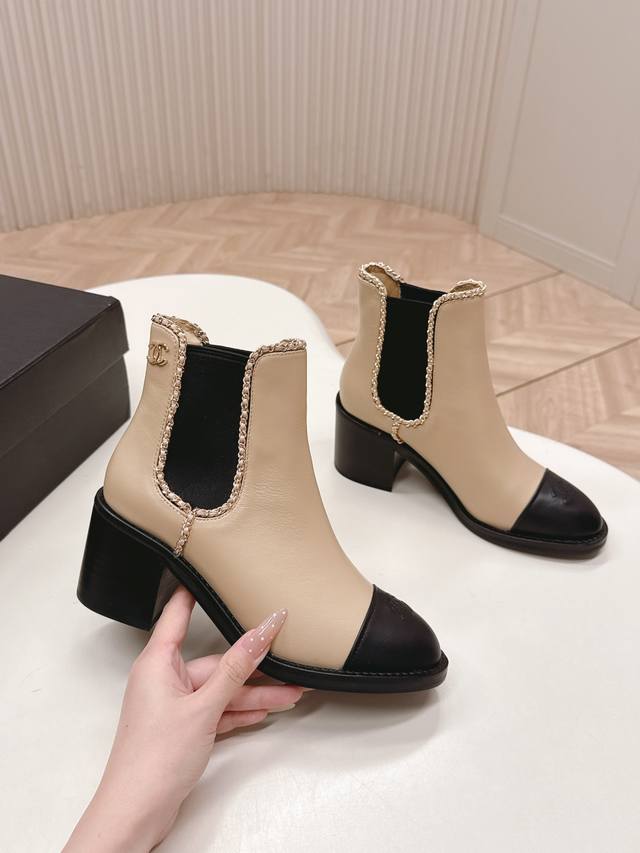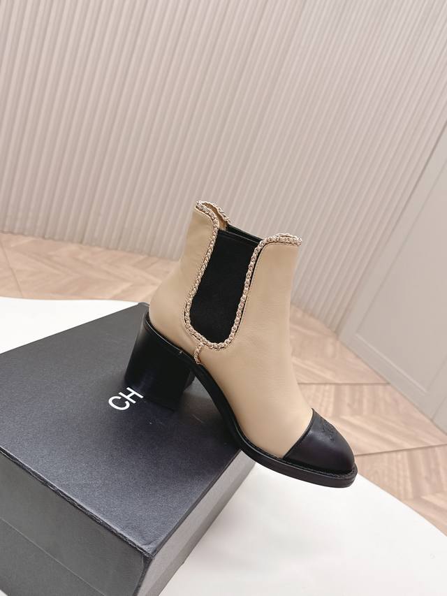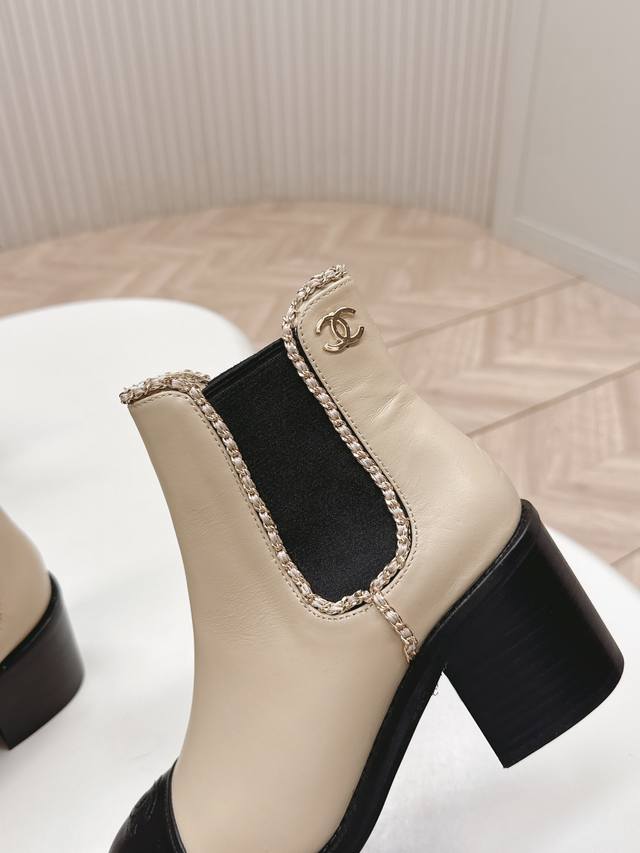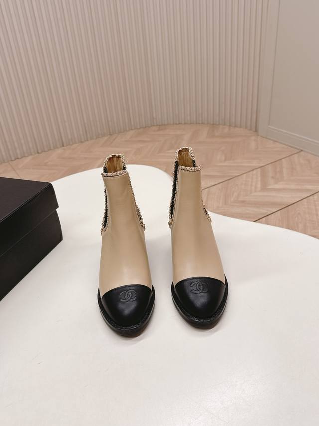 Chanel香奈儿25Ss 新款秋冬高跟马丁靴短靴 楦型百搭瘦脚Yyds.造型立体饱满,上脚舒适 气场十足,橡筋一脚蹬 易穿搭 经典链条五金 高级优雅 鞋面:牛