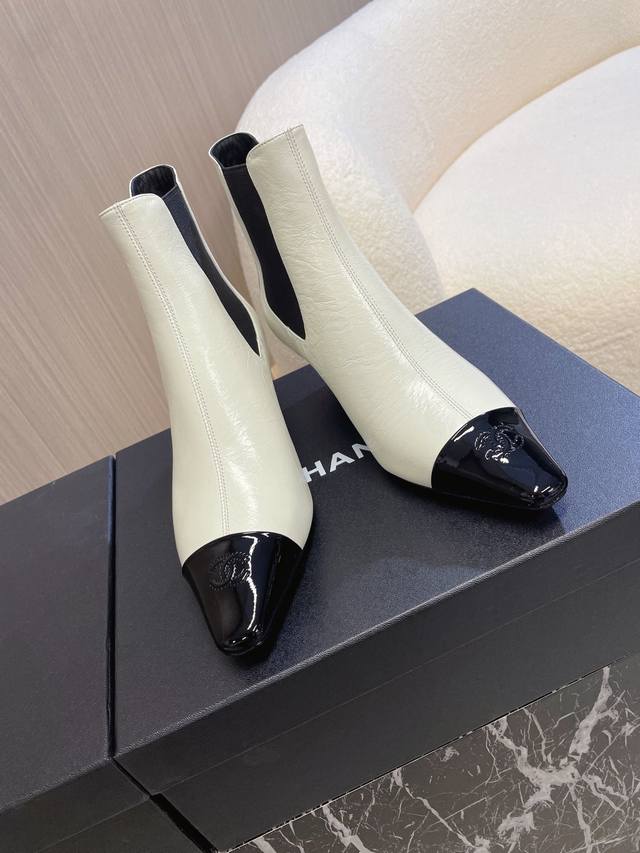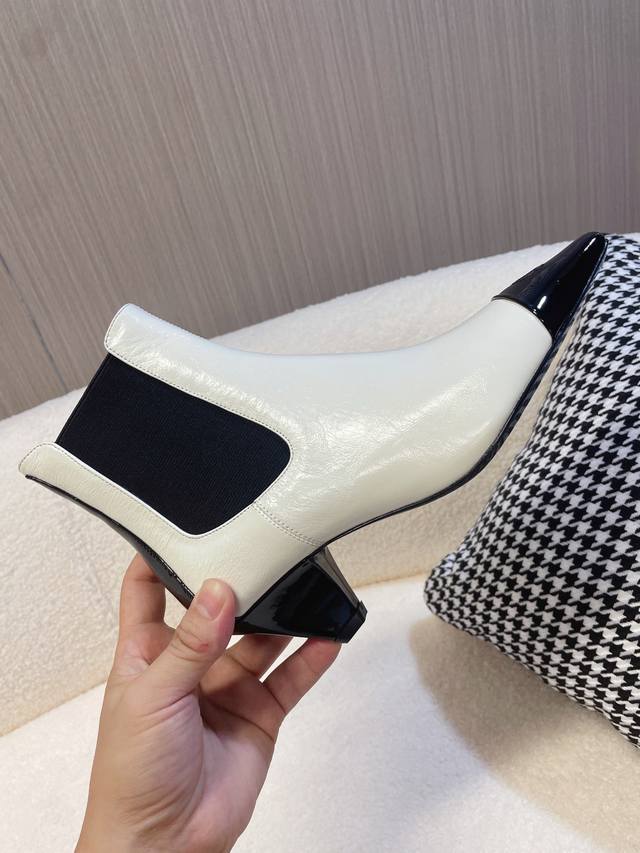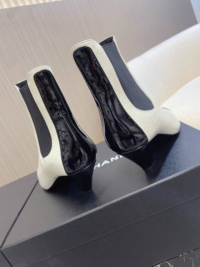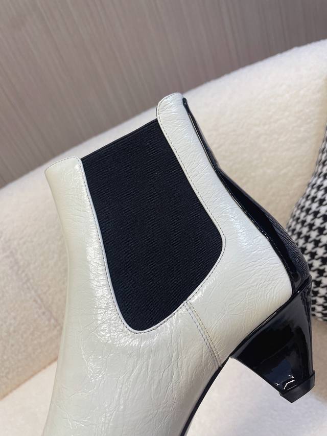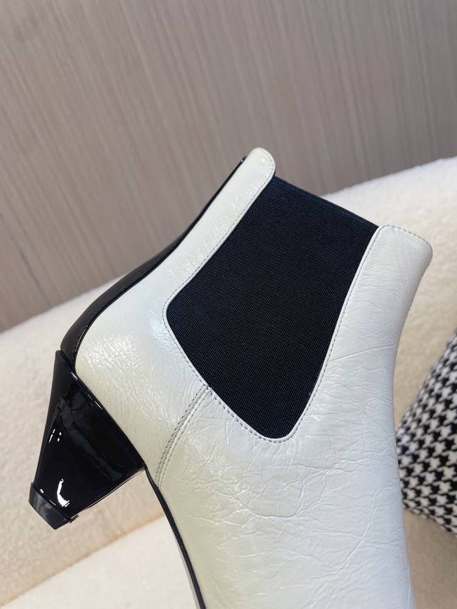 Chanel;香奶奶裸靴;短靴 极简风格,时尚犹物,上脚超级瘦腿瘦脚,成功拉伸大长腿 高级定制爆裂纹皮面,拼接松紧弹力带,全真皮内里垫脚,5Cm粗跟真皮大底 3