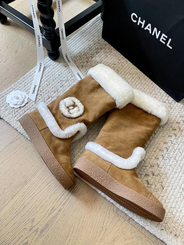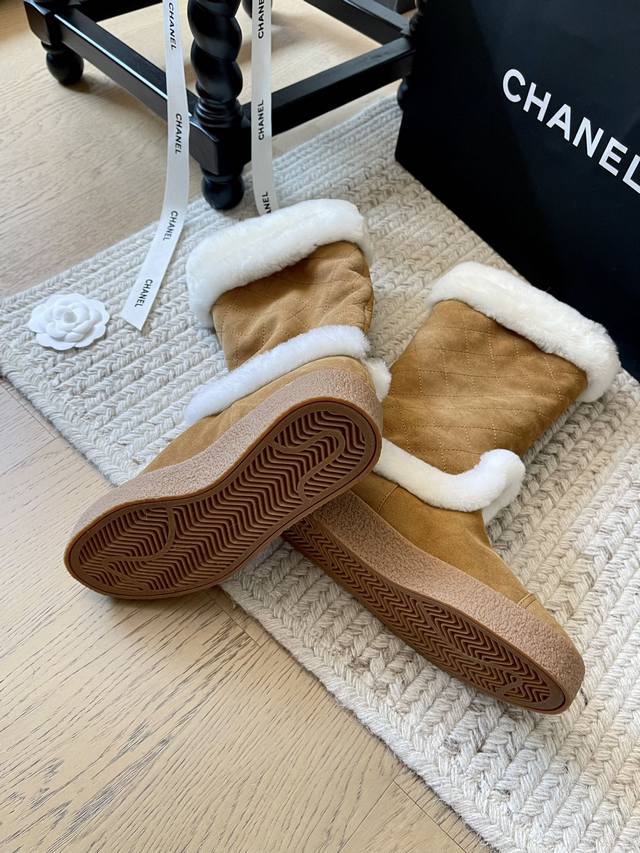 Chanel 冬季雪地羊毛靴! 重工高定系列!顶级版本 鞋面采用进口皮草定制羊毛!非普通羊毛 羊皮内里 原版定制五金扣 原版大底 码数:35-41 定制不退不换