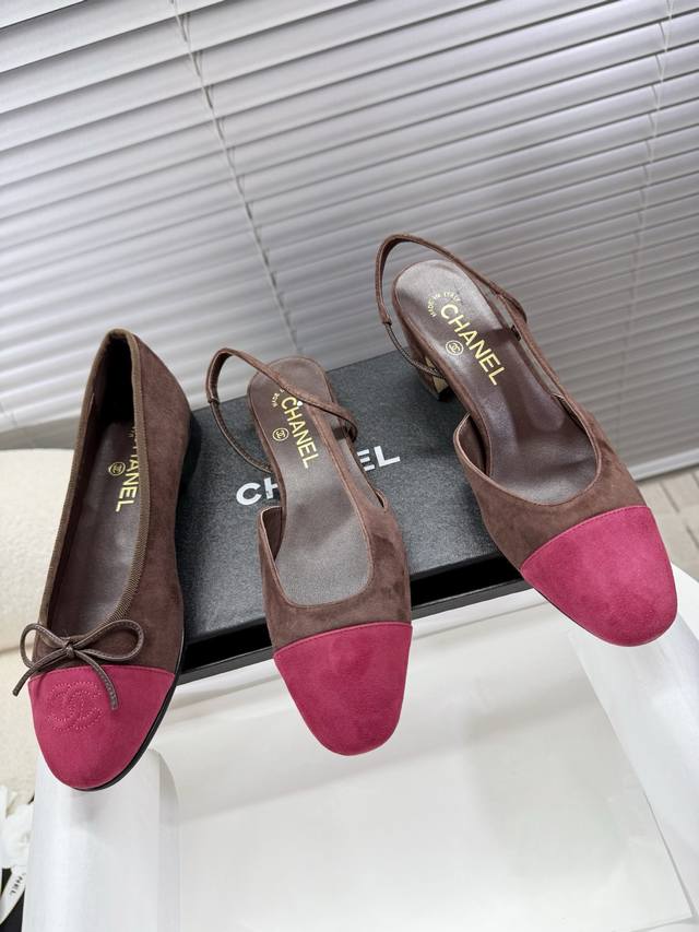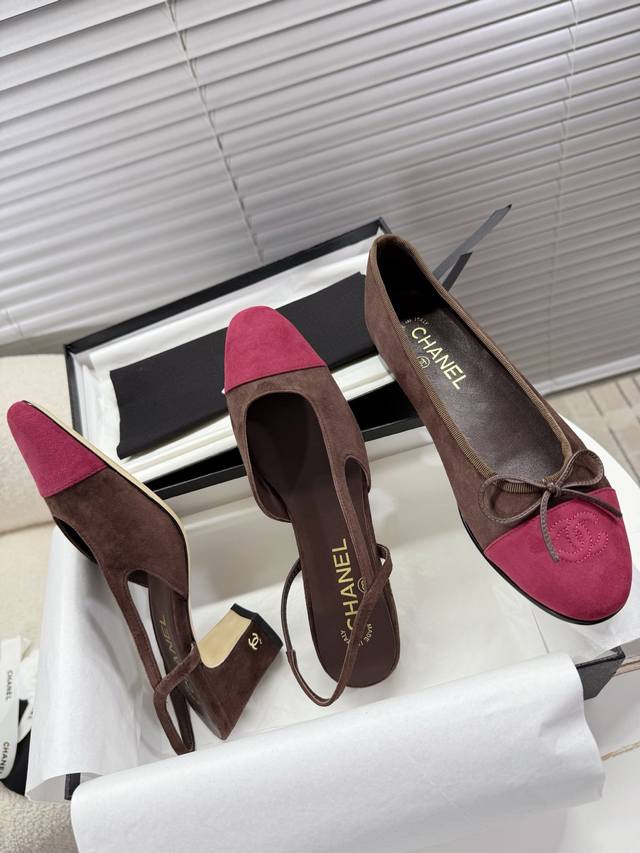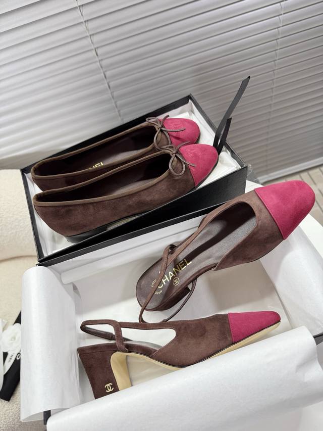 Chanel 奶奶香芭蕾舞鞋,侧空凉鞋~~ 时尚走秀款 拼接色混搭,最新电绣菱格Logo工艺,1.5Cm平跟 6.5Cm粗跟小Logo点缀,演绎时尚!怎么搭怎么好看系列! 原版定制原木色真皮大底,头层羊猄面料,山羊皮内里垫脚 35 40 41 42 43 定做 正码 配套包装 低跟 ,粗跟 ,单鞋