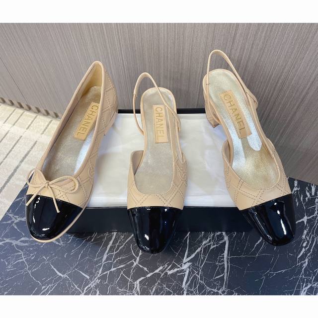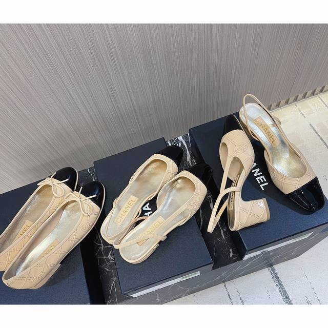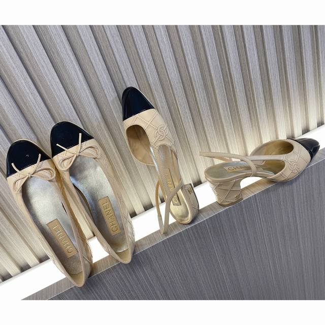 Chanel 奶奶香菱格纹芭蕾舞鞋,侧空凉鞋~~