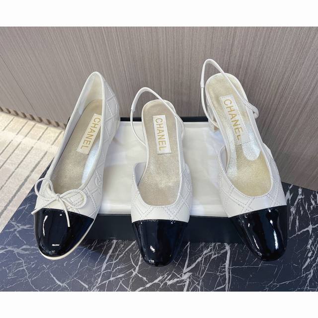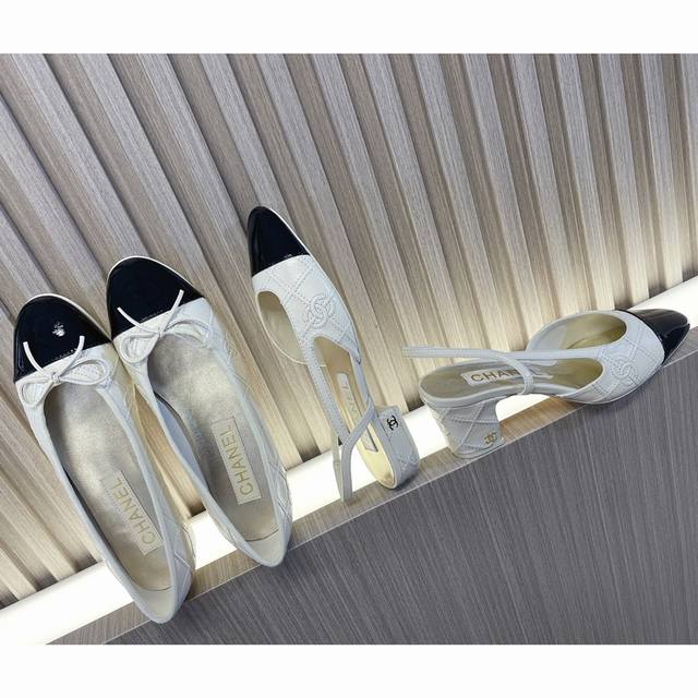 / Chanel 奶奶香菱格纹芭蕾舞鞋,侧空凉鞋~~ 时尚走秀款 拼接色混搭,最新电绣菱格Logo工艺,1.5Cm平跟 6.5Cm粗跟小Logo点缀,演绎时尚!怎么