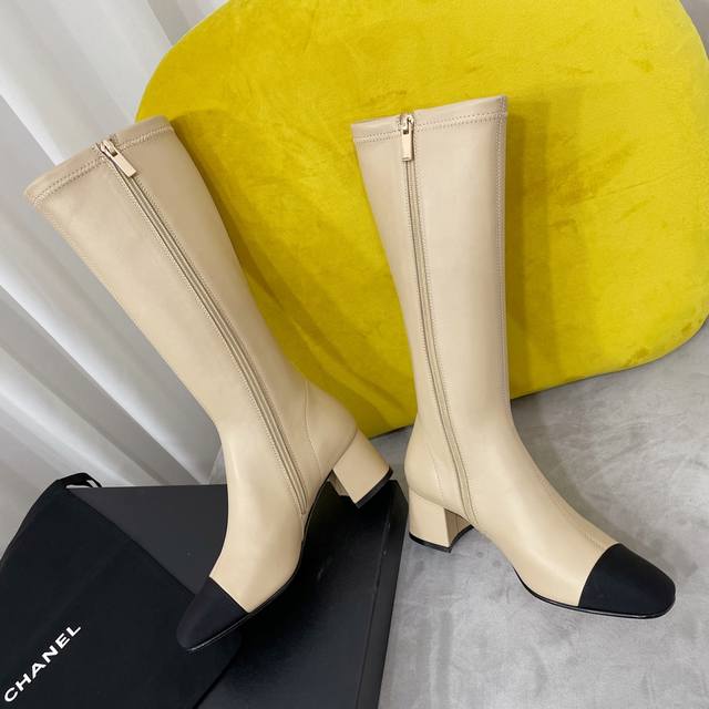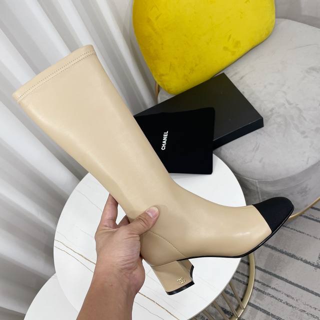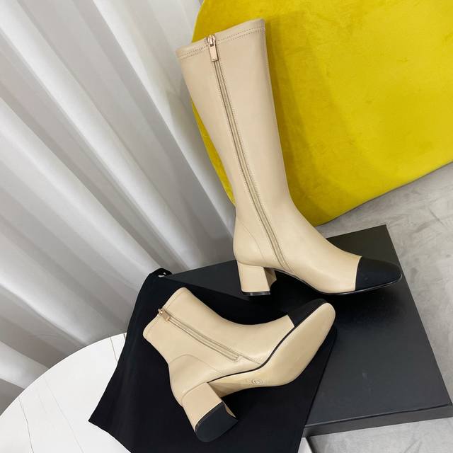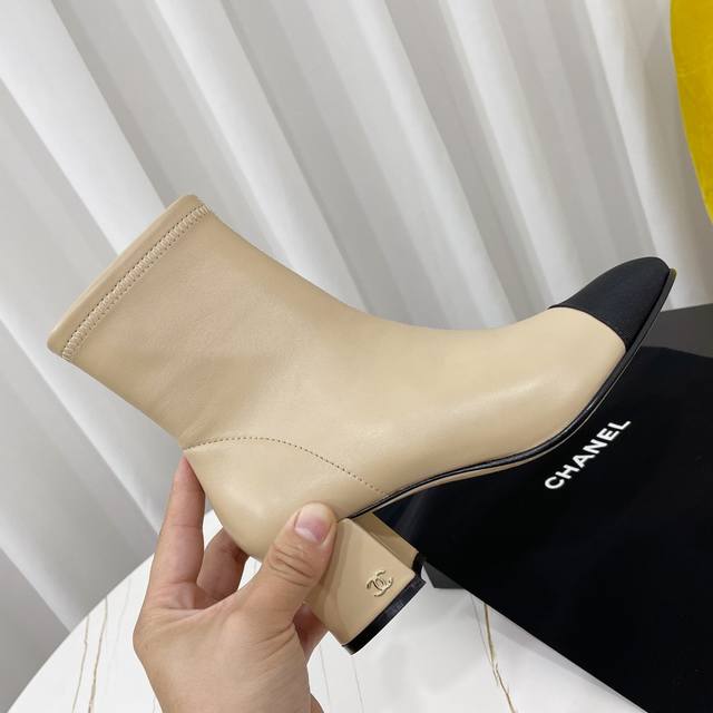 秋冬新款Chanel 25 小香经典拼色链条粗跟短靴厚底切尔西 马丁靴...