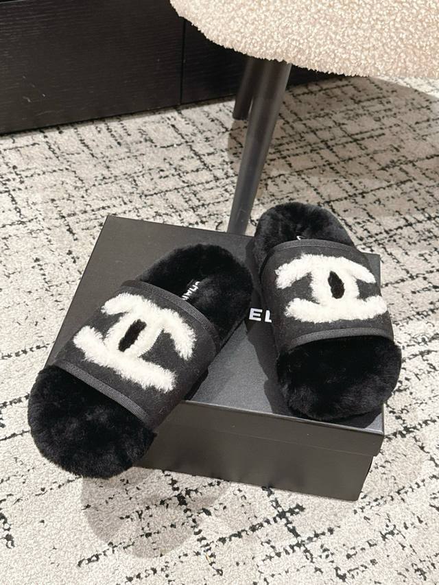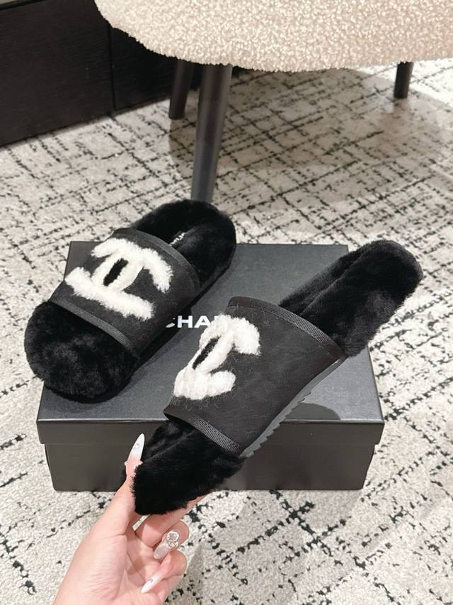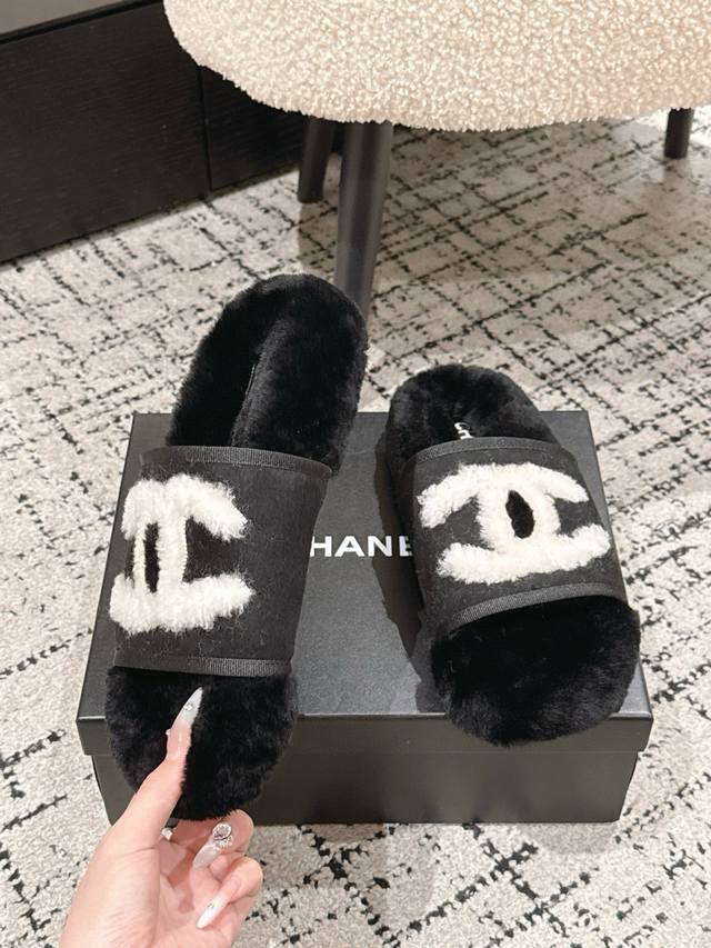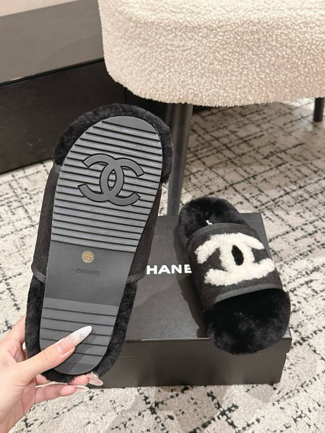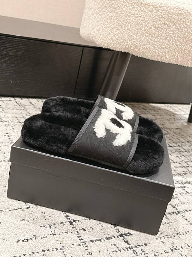Chanel 小香家 25秋冬平底羊毛拖鞋新品 DDD 超舒适的毛拖 简约随性 时髦有范, 慵懒又不乏高级感,最舒适的拖鞋没有之一 DDD 随意上脚都好看有型,绝绝子 DDD 鞋面 内里 垫脚 全羊毛 DDD Size: #35-39 40 订做不退换 DDD