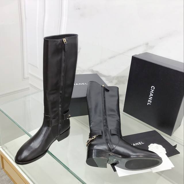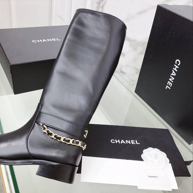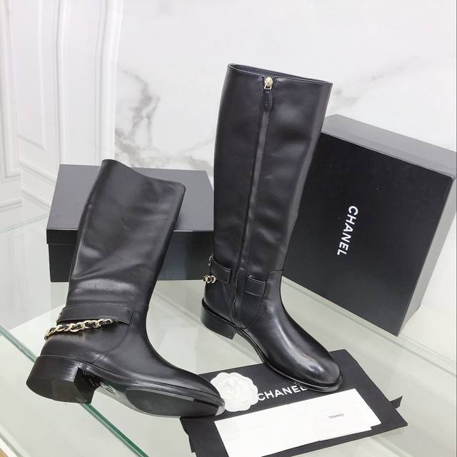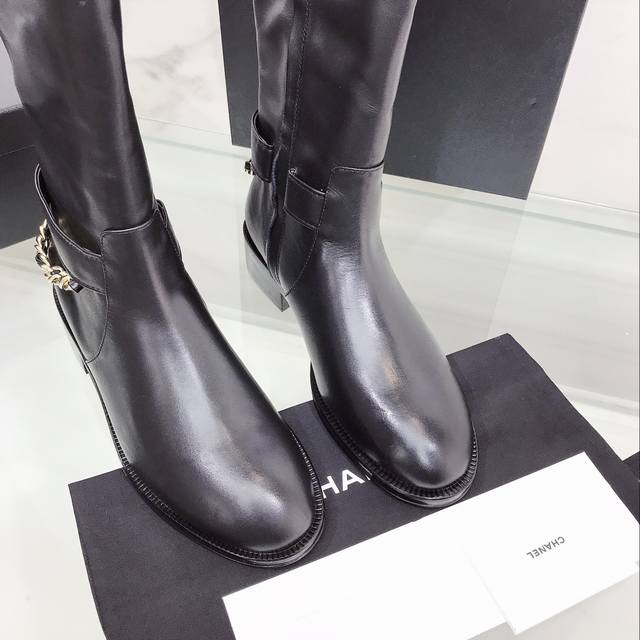 Chanel 小香秋冬新款链条长靴 Ddd 采用进口牛皮面料,羊皮内里,意大利进口真皮大底!跟高3Cm,上脚巨显腿直,简直就是一款神仙靴子,真的帅爆了 Ddd 码数:35~39 40定做不退换 DDD Ddd