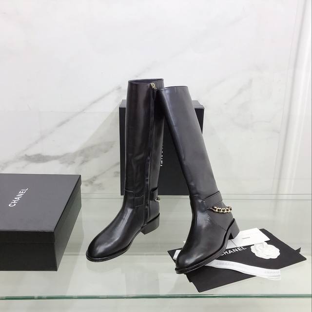 Chanel 小香秋冬新款链条长靴 采用进口牛皮面料,羊皮内里,意大利进口真皮大底!跟高3Cm,上脚巨显腿直,简直就是一款神仙靴子,真的帅爆了 码数:35~39