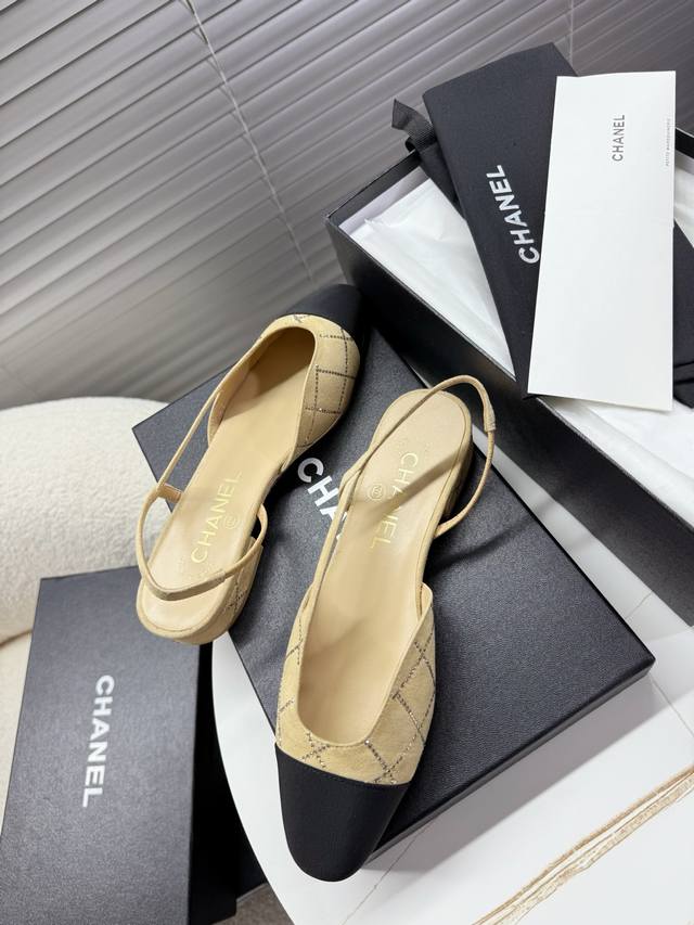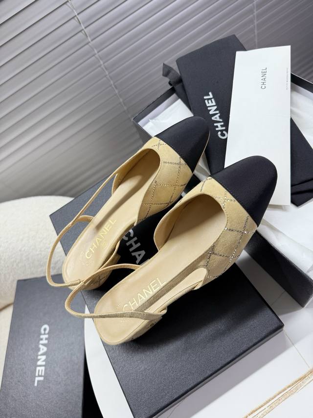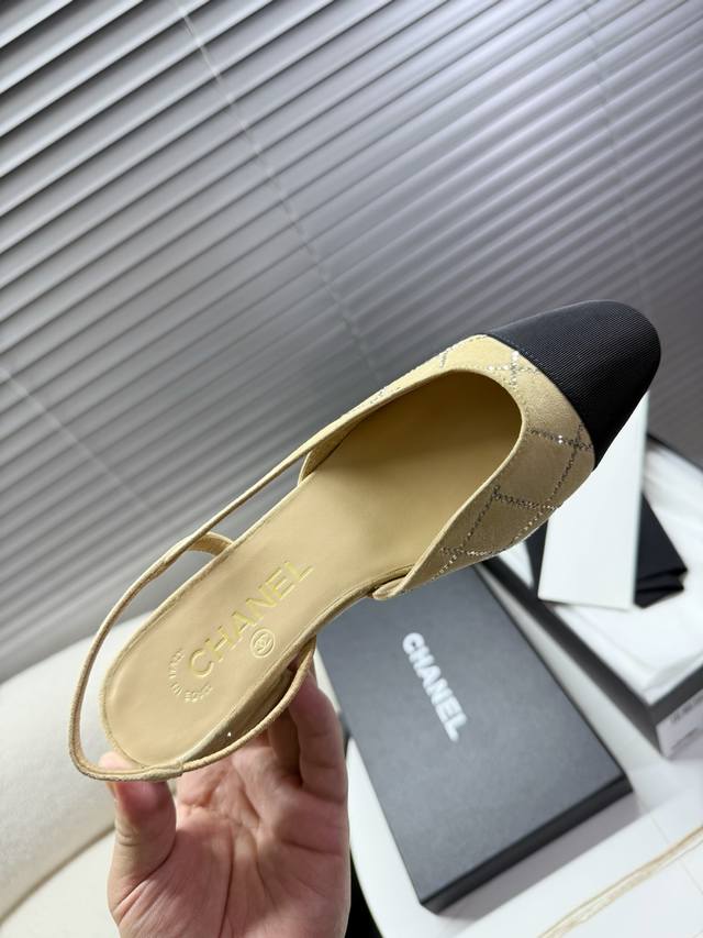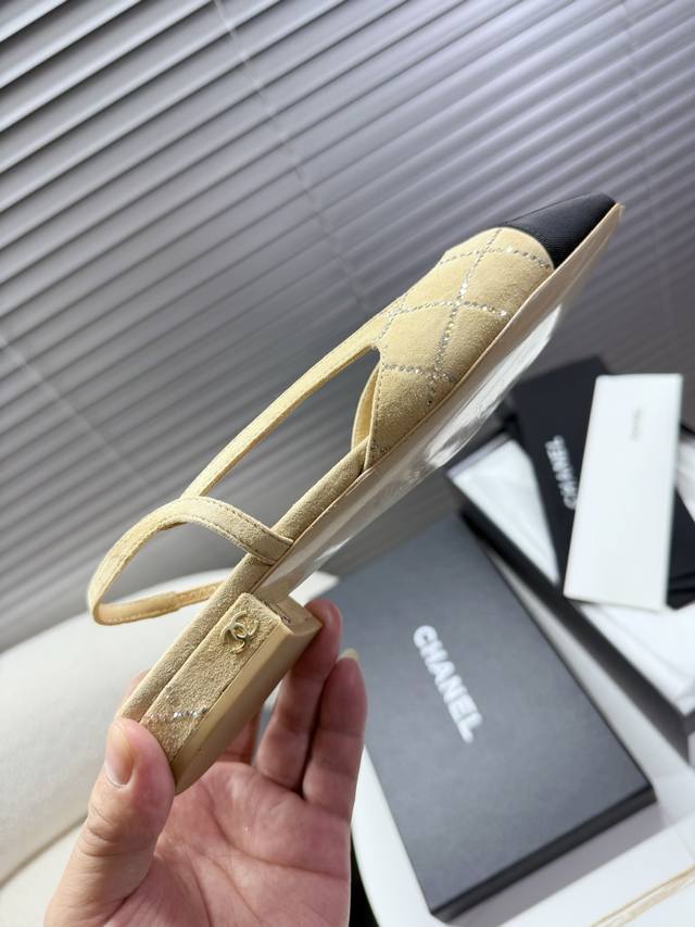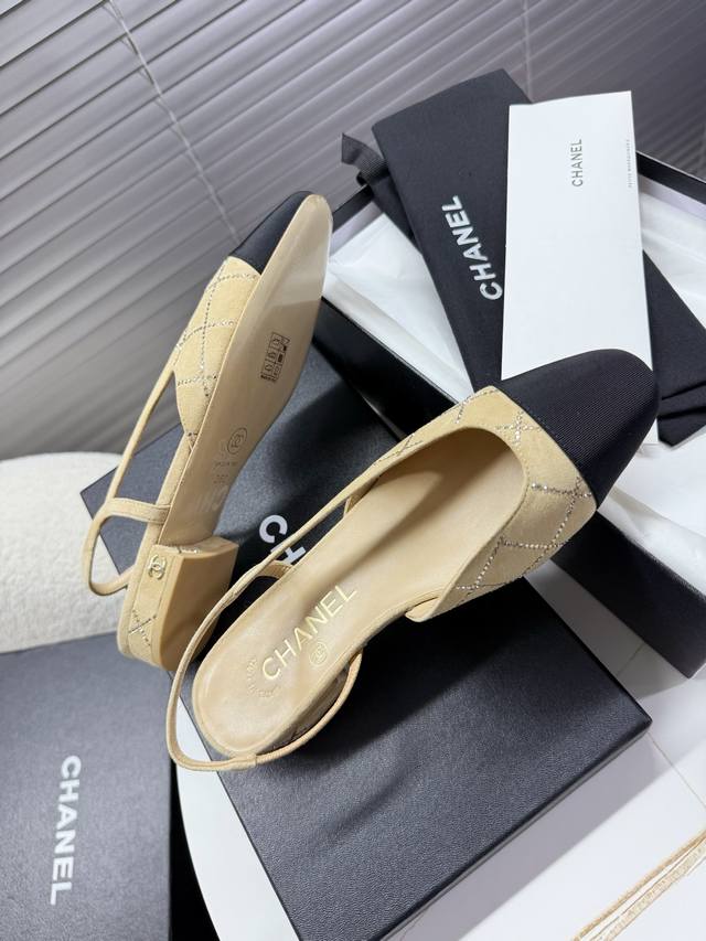 Chanel 小香菱格烫钻凉鞋,侧空粗跟凉鞋~~ DDD 时尚走秀款 DDD 拼接色混搭,最新菱格烫钻面工艺,1.5Cm平跟 6.5Cm粗跟小Logo点缀,演绎时尚!怎么搭怎么好看系列! DDD 原版定制原木色真皮大底,Blingbling烫钻,山羊皮内里垫脚 DDD 35 40正码 配套包装 DDD 低跟 ,粗跟 DDD