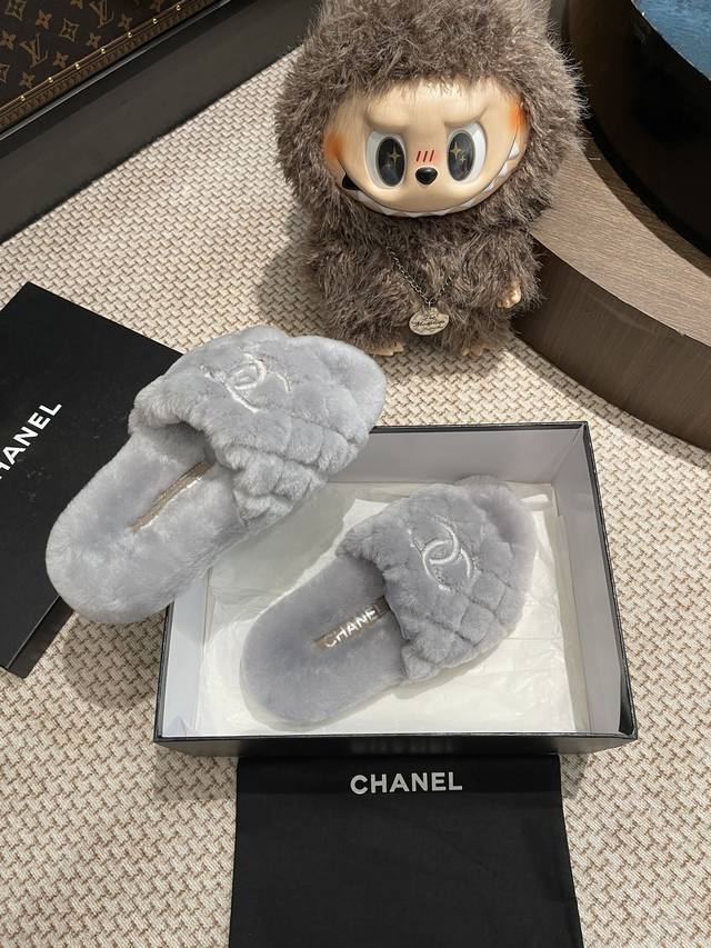 Chanel 毛拖鞋整双鞋子采购Zp开发打造,全部定制材料,独家开模大底,细节全部对版出货,连包装也做到跟正品一样。码数:35-40 40订做不退换 DDD
