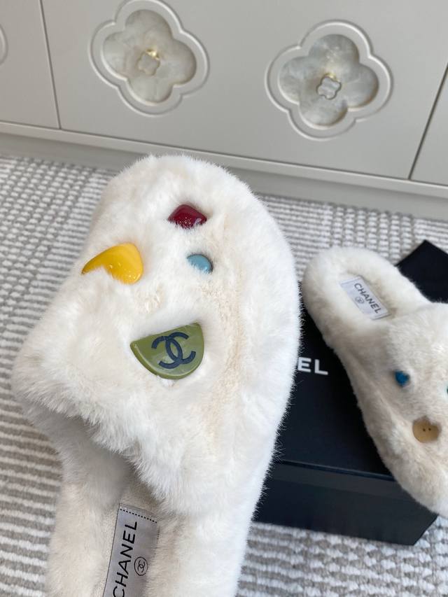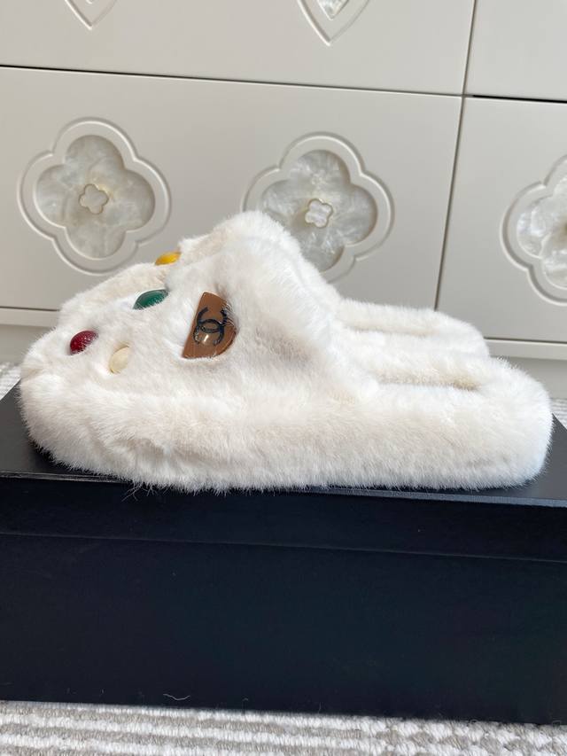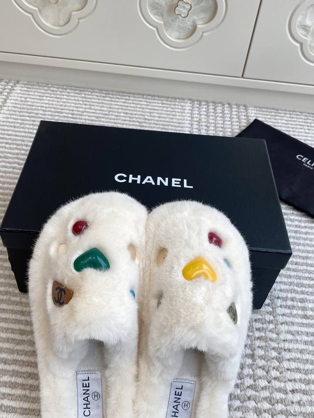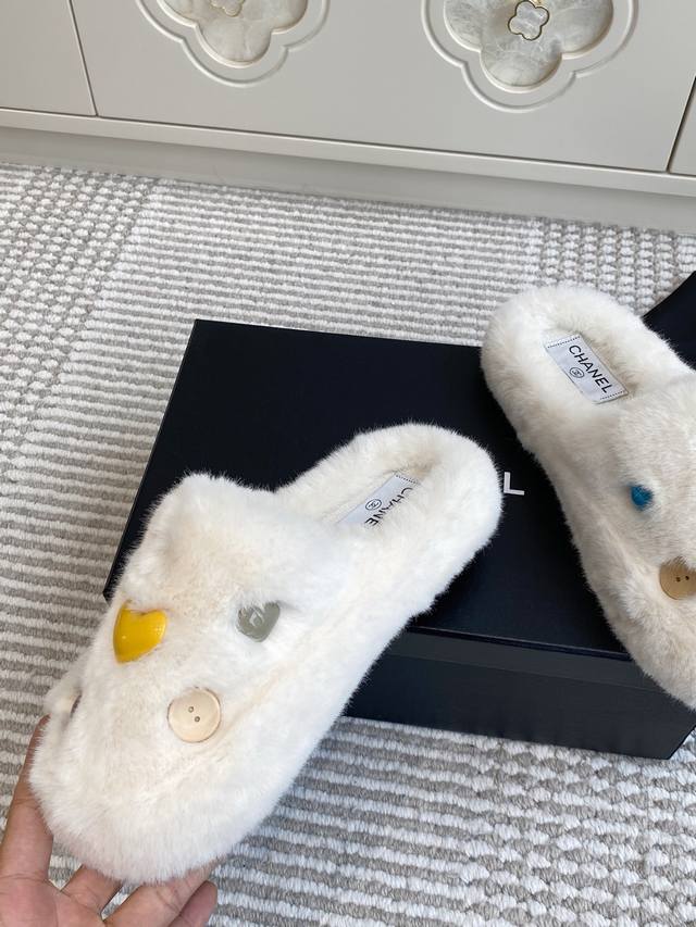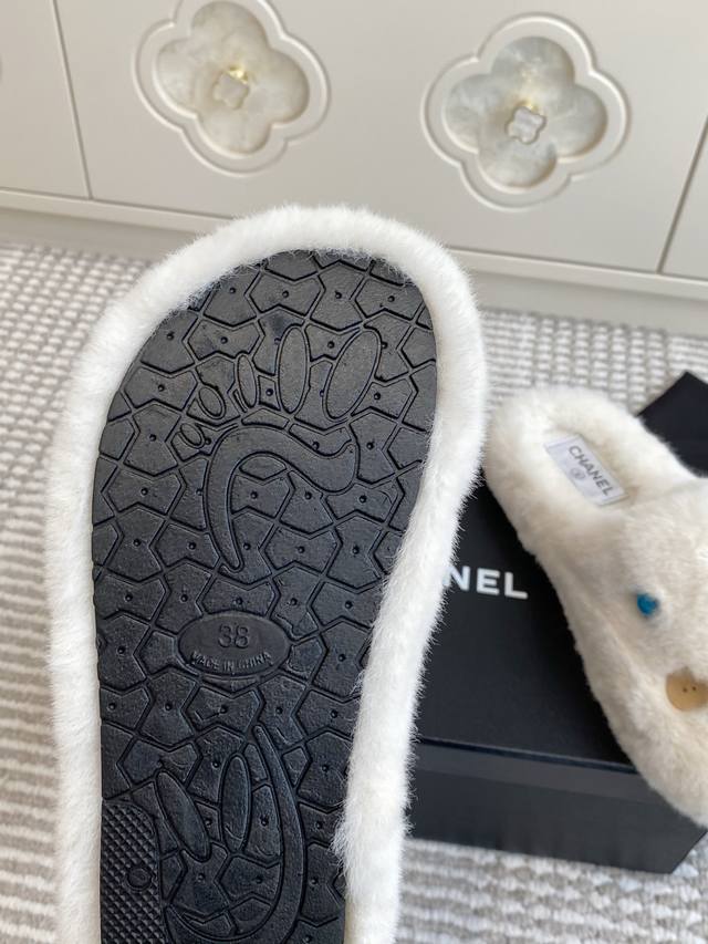 Chanel 秋冬新品 毛毛拖鞋 这款毛拖真的是真太可爱了 DDD 柔软蓬松的毛毛 舒服暖脚 增高显腿长 秋冬搭配袜子休闲又慵懒 上脚真的好看又时髦美腻美爆了 DDD 进口羊毛 手感细腻柔软丝滑 橡胶大底 DDD 码数:35-39 40 41订做 DDD