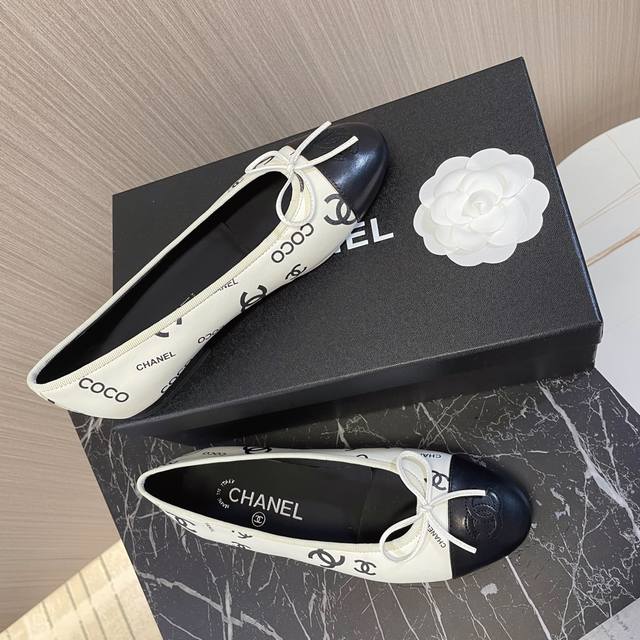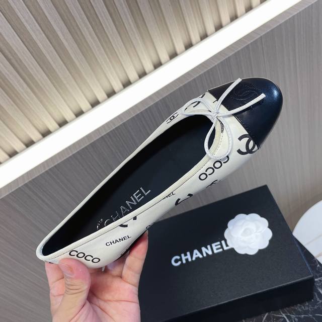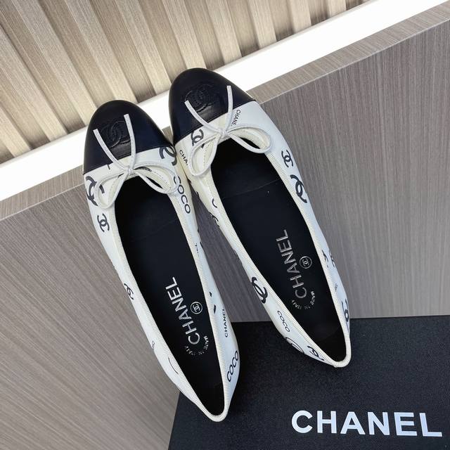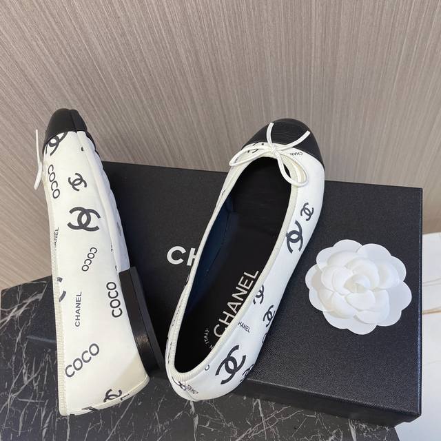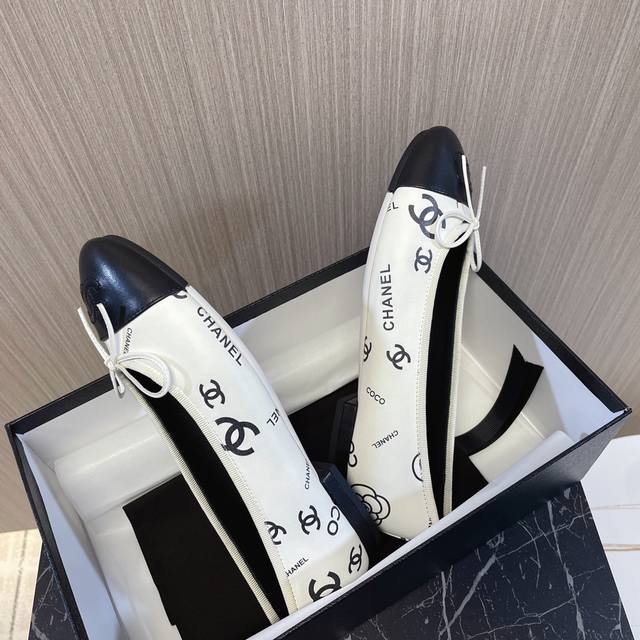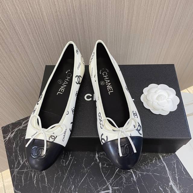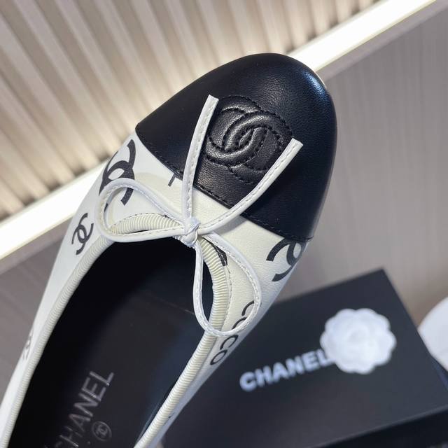 / Chanel 经典拼色芭蕾鞋 时尚走秀款M多年过去,依旧吸粉 拼接色混搭,蝴蝶结点缀,演绎时尚!怎么搭怎么好看系列! 原版定制原木色真皮大底,1.5Cm方跟,进