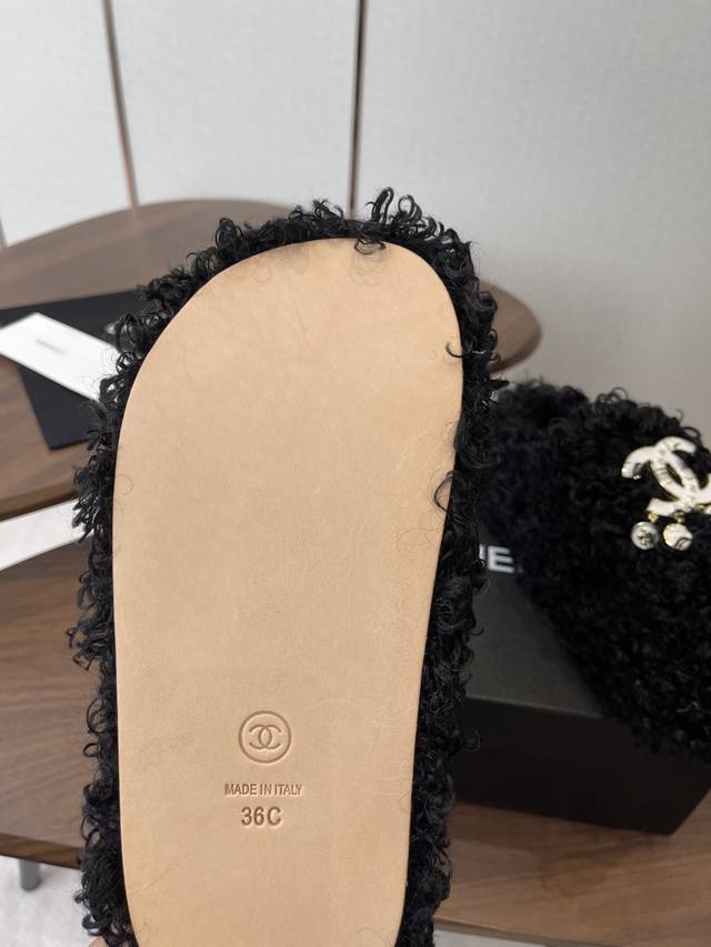 Chanel 经典 双C毛毛拖鞋!这款毛拖真的是真太可爱了~ 柔软蓬松的毛毛,舒服暖脚 秋冬搭配袜子休闲又慵懒 上脚真的好看又时髦 进口泰迪毛 手感细腻柔软丝滑