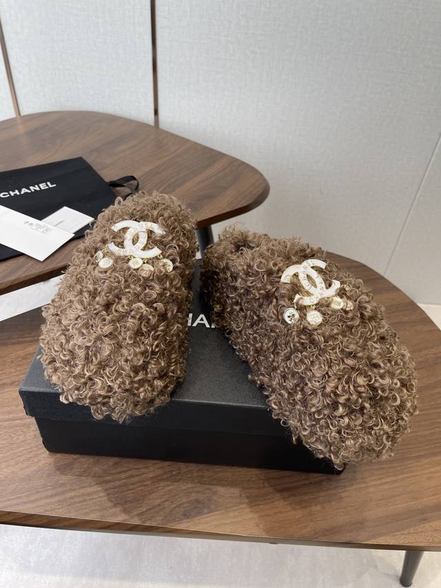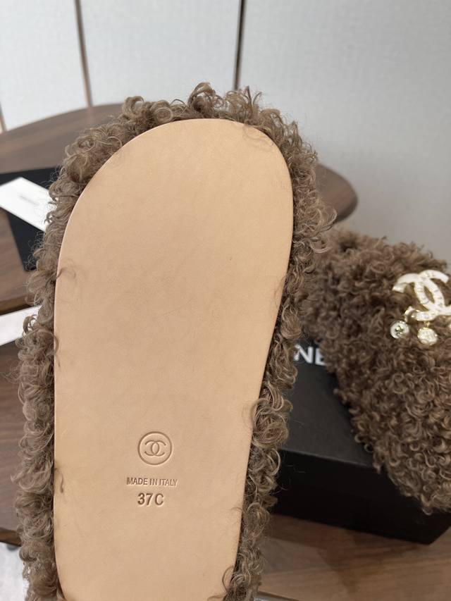 Chanel 经典 双C毛毛拖鞋!这款毛拖真的是真太可爱了~ 柔软蓬松的毛毛,舒服暖脚 秋冬搭配袜子休闲又慵懒 上脚真的好看又时髦 进口泰迪毛 手感细腻柔软丝滑