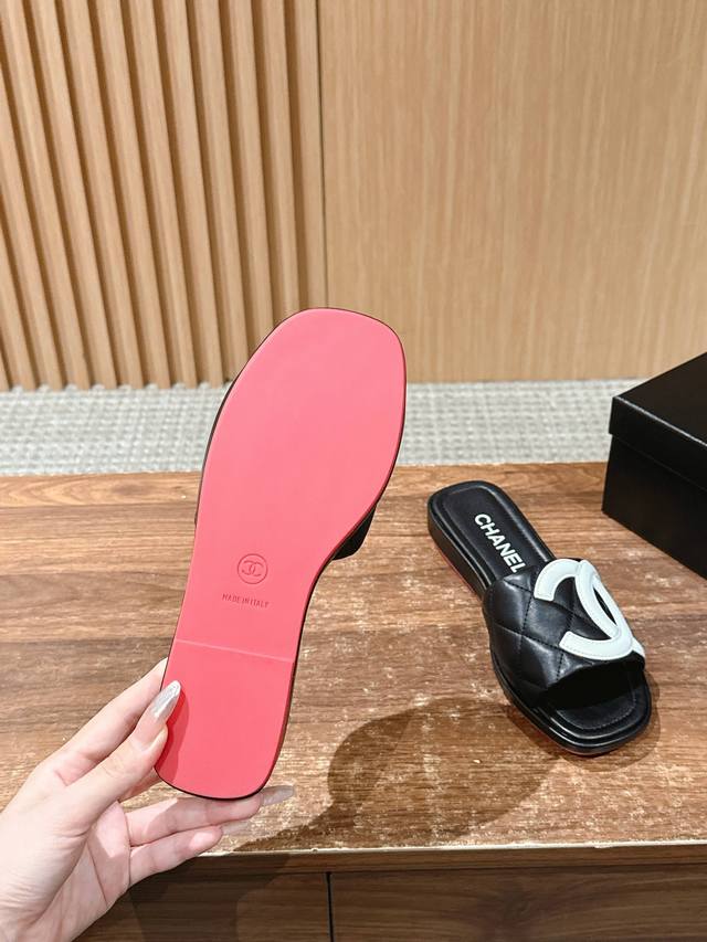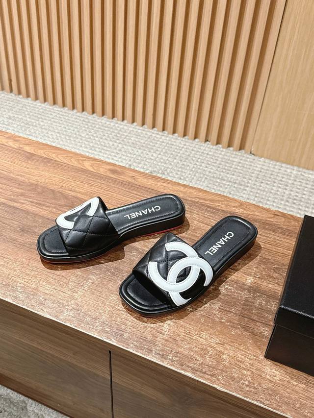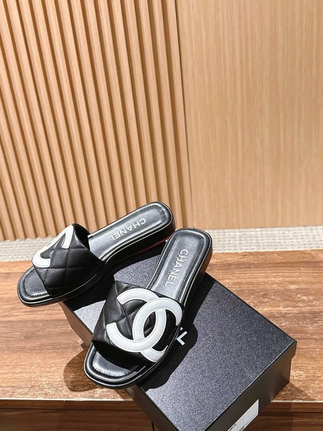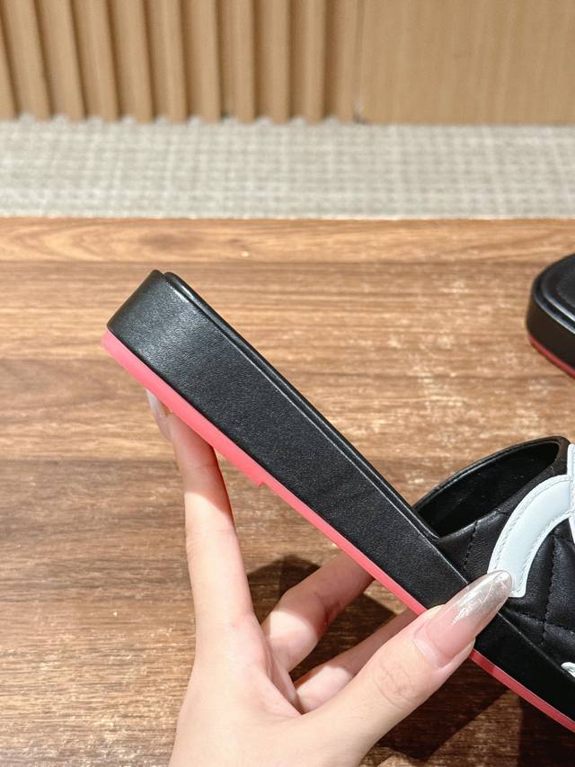 厂价 Chane* |小香25A春夏新品 菱格大双C厚底拖鞋, 每一步都踏出法式优雅。 鞋面以细腻小羊皮精心打造, 经典菱格纹纵横交错...